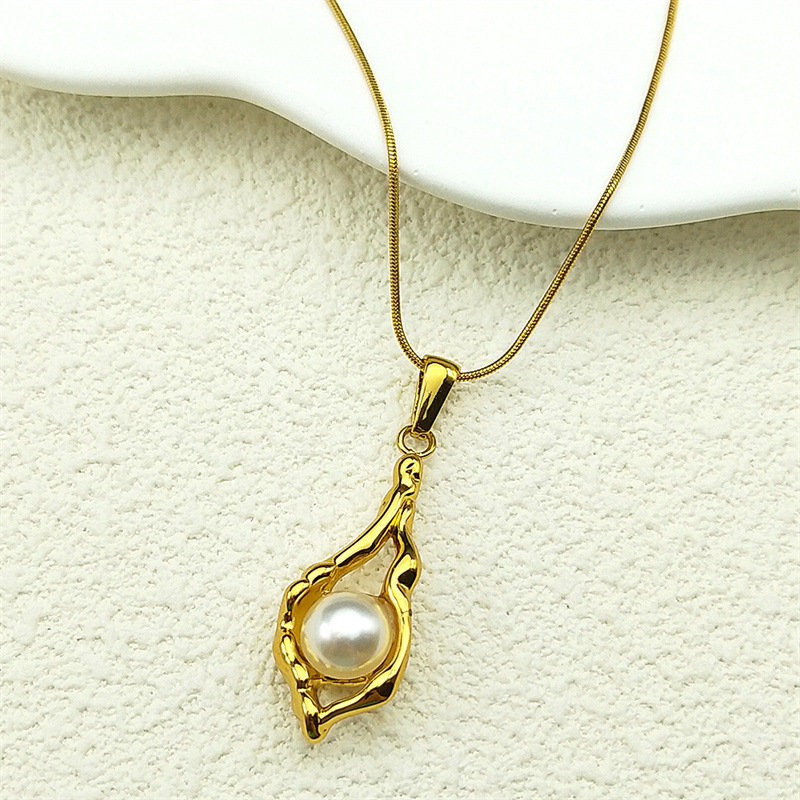 Collier de bijoux en acier inoxydable, Acier inoxydable 304, avec perle de plastique, Plaqué or 18K, bijoux de mode & pour femme & creux, Vendu par PC