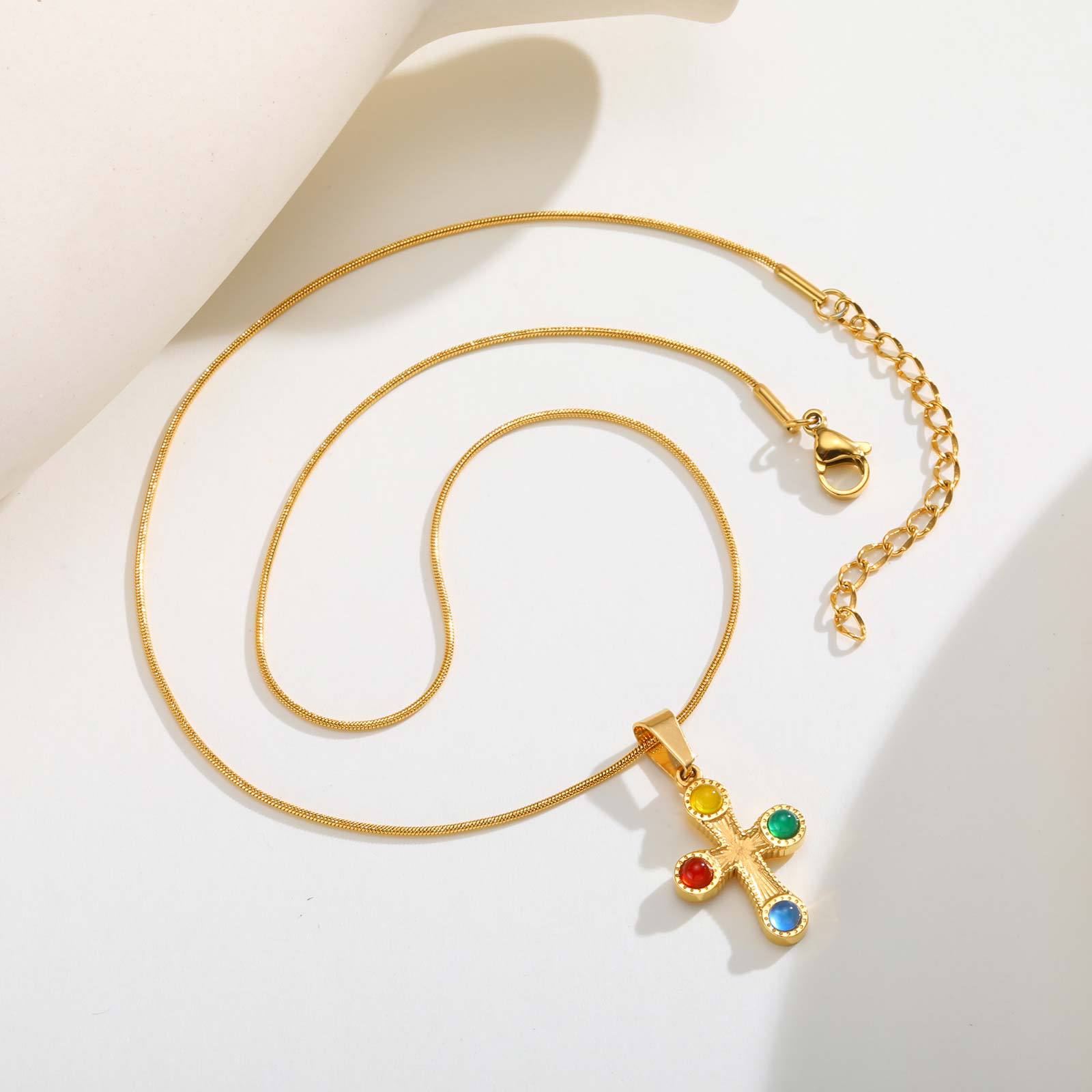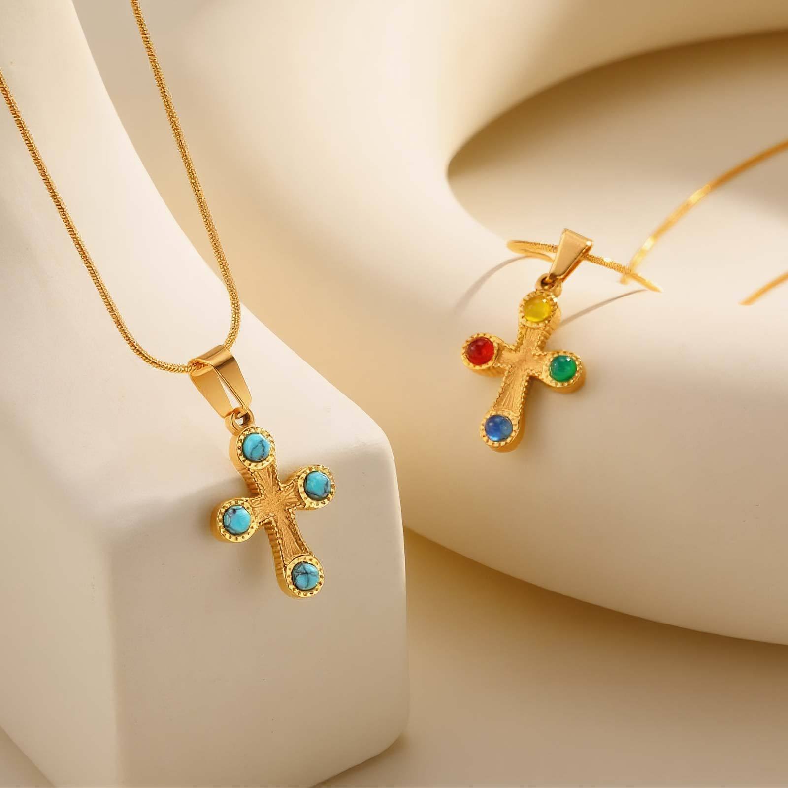 Collier de bijoux en acier inoxydable, Acier inoxydable 304, avec turquoise naturelle, croix, bijoux de mode & différents matériaux pour le choix & pour femme, doré, Vendu par PC