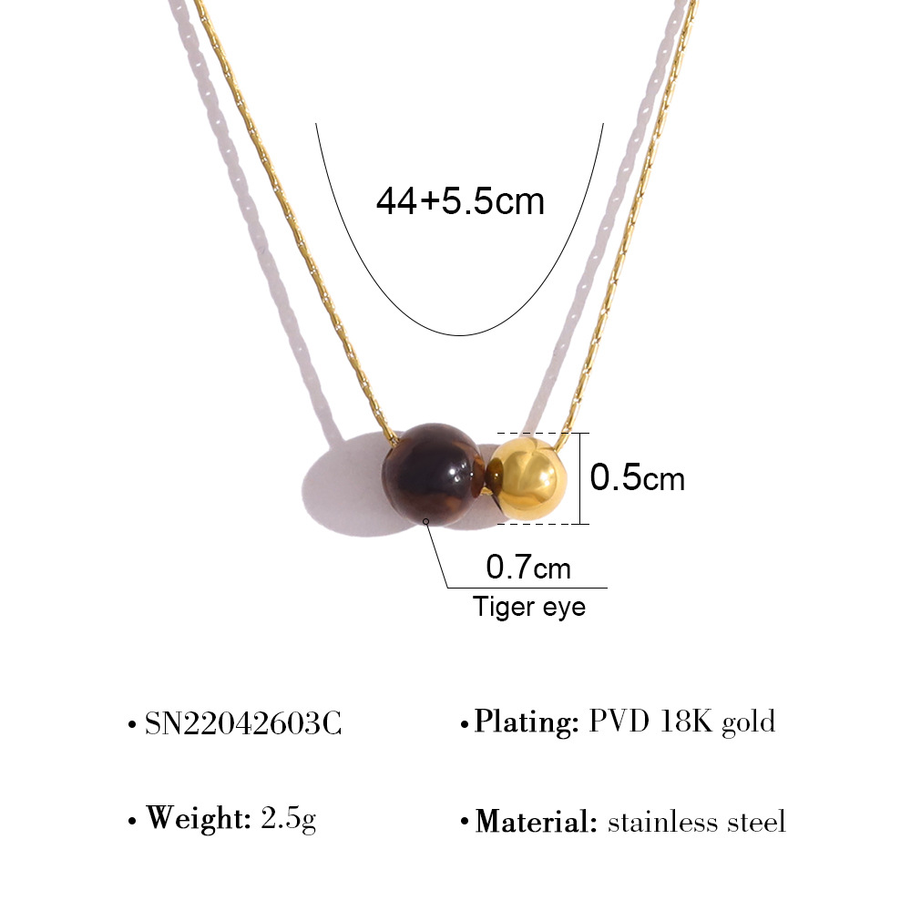 Collier de bijoux en acier inoxydable, Acier inoxydable 304, avec oeil de tigre, Plaqué or 18K, bijoux de mode & différents matériaux pour le choix & pour femme, Vendu par PC