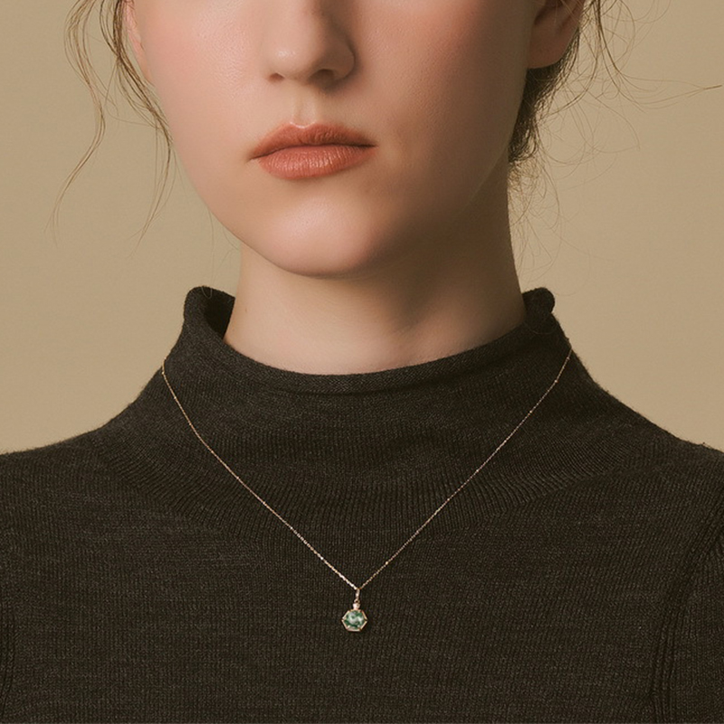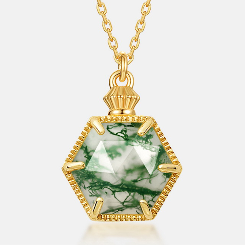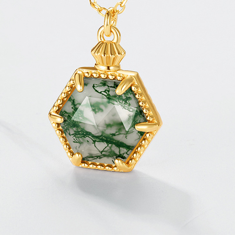 Collier de bijoux en argent , Argent sterling 925, avec agate mousse, hexagone, Placage de couleur d'or, styles différents pour le choix, 13.6x15.4mm, Vendu par PC