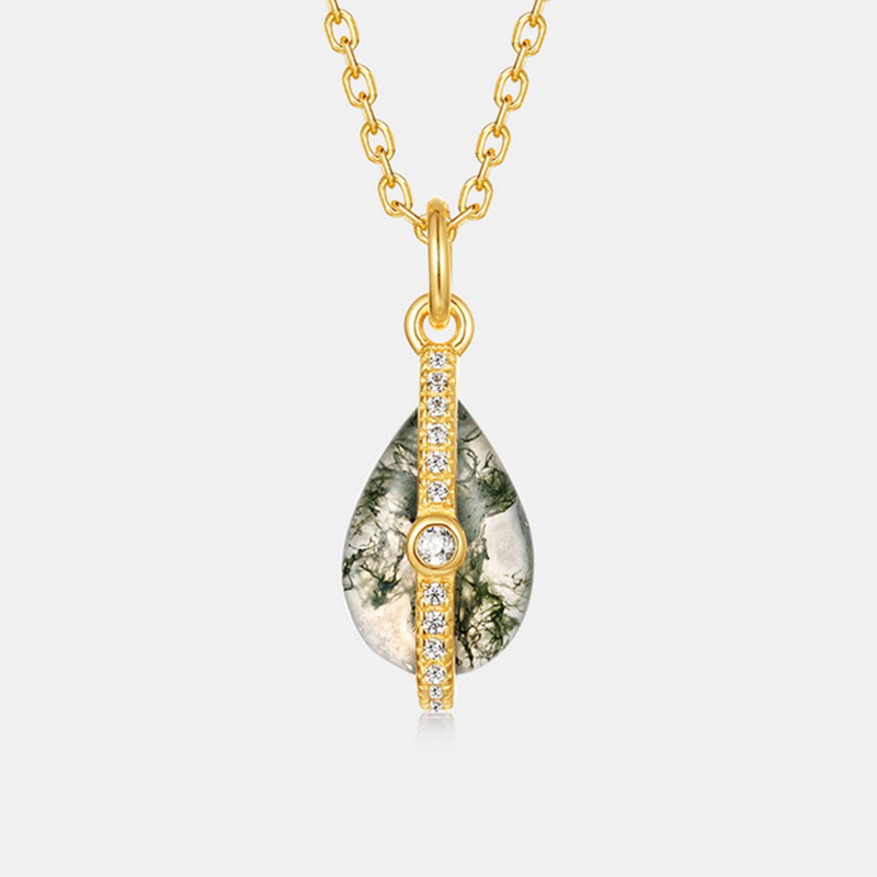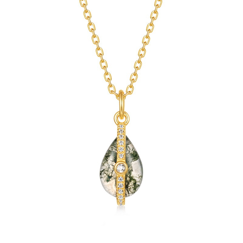 Collier de bijoux en argent , Argent sterling 925, avec agate mousse, Placage de couleur d'or, styles différents pour le choix & pour femme & avec strass, 6x13.8mm, Vendu par PC