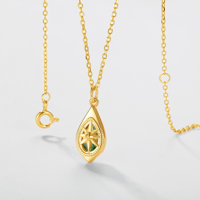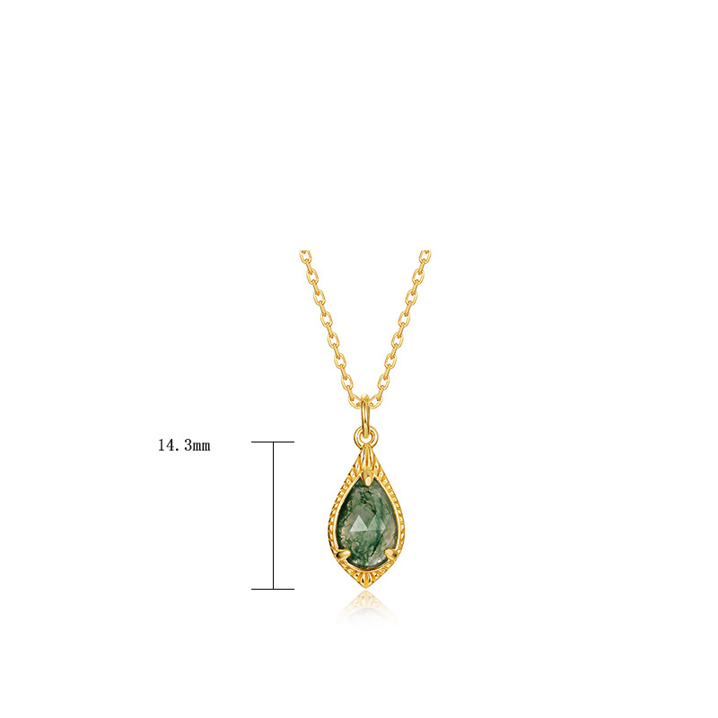 Collier de bijoux en argent , Argent sterling 925, avec agate mousse, larme, Placage de couleur d'or, styles différents pour le choix & pour femme, 14.3mm, Vendu par PC