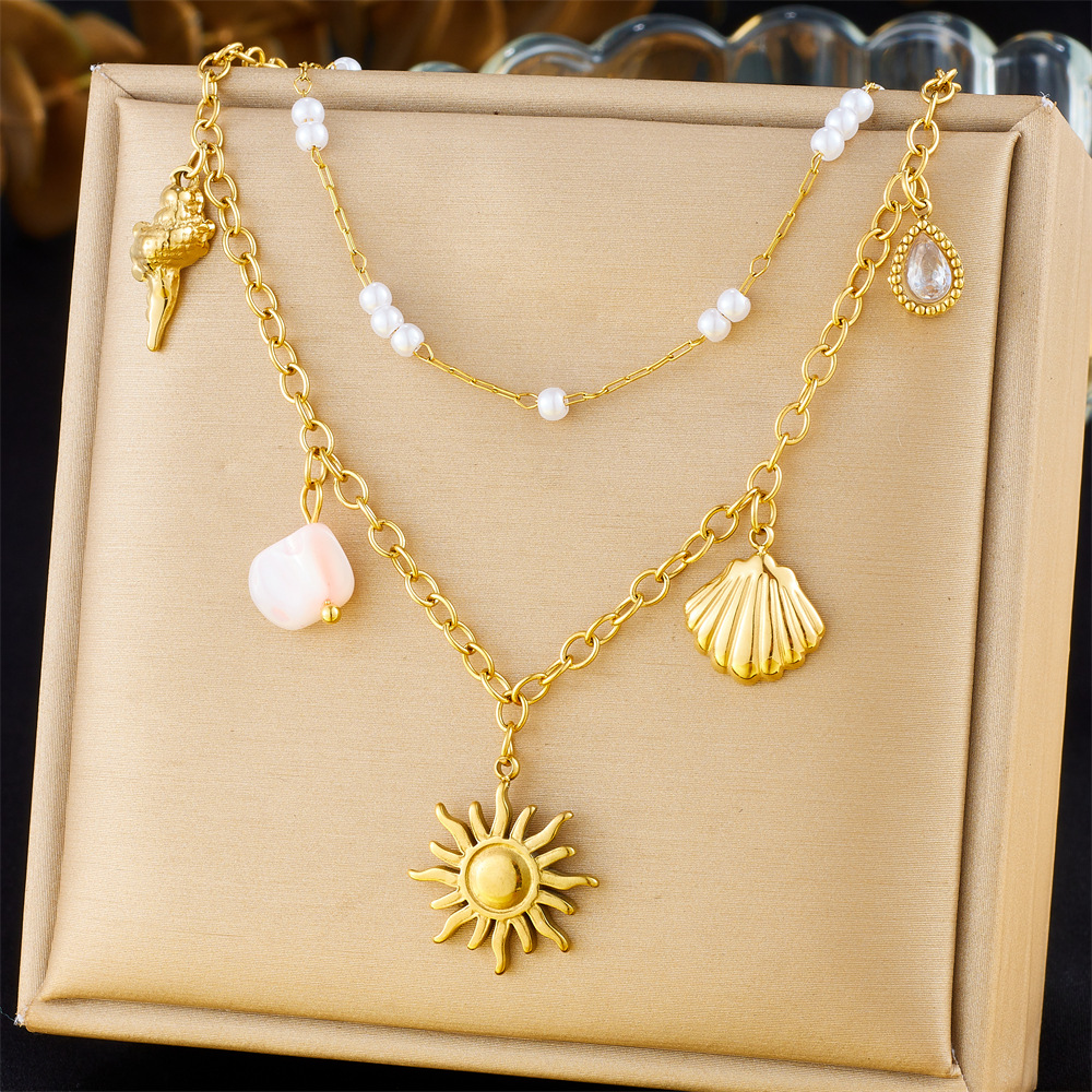 Collier de mode Multi couche, Acier inoxydable 304, avec résine & perle de plastique, Placage, Double couche & styles différents pour le choix & pour femme, doré, Vendu par PC