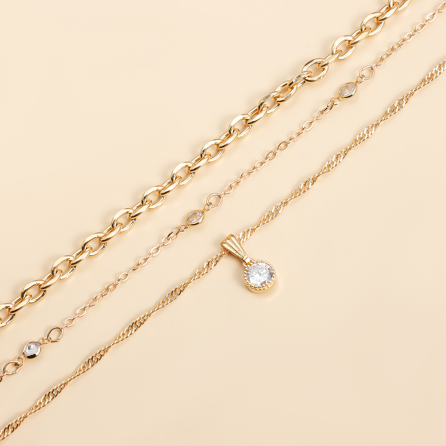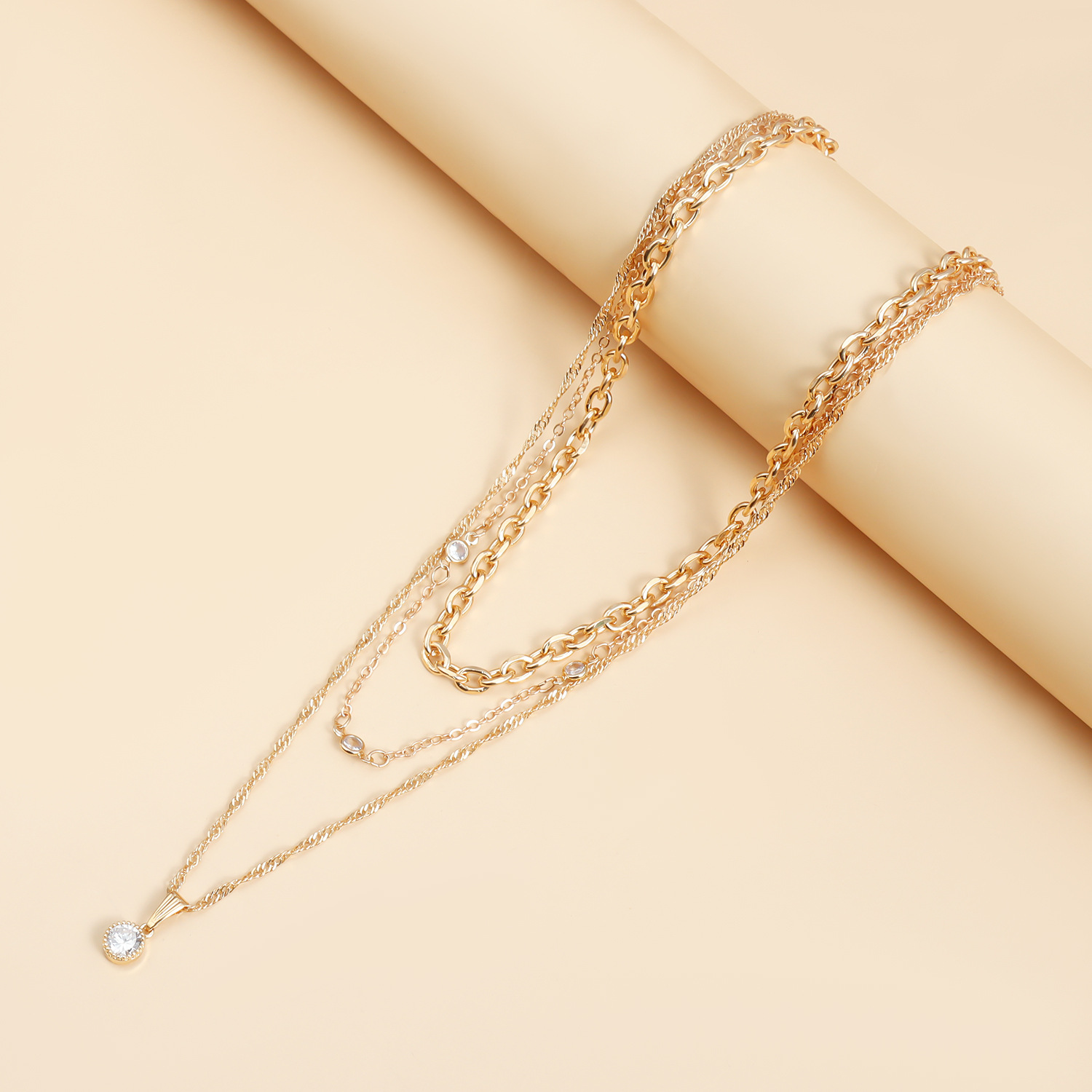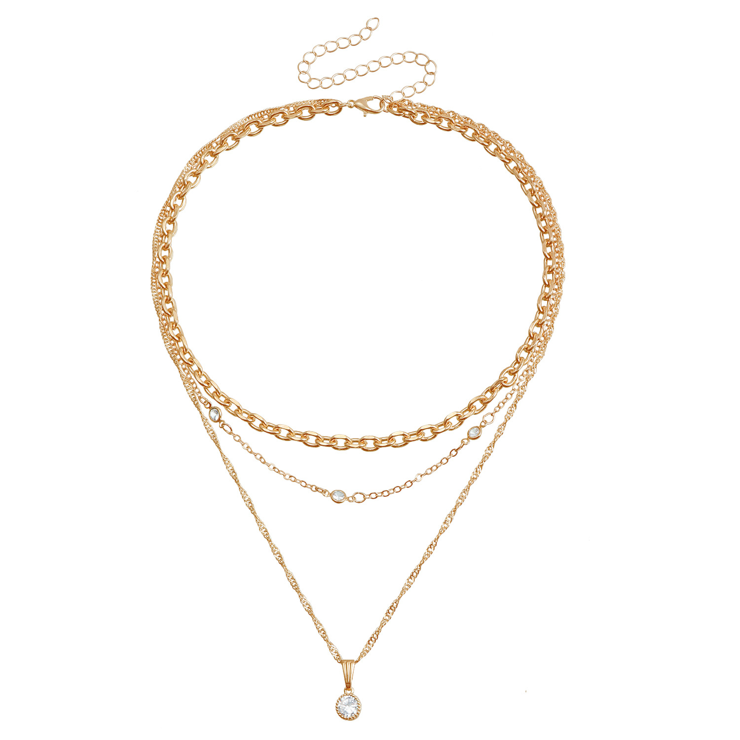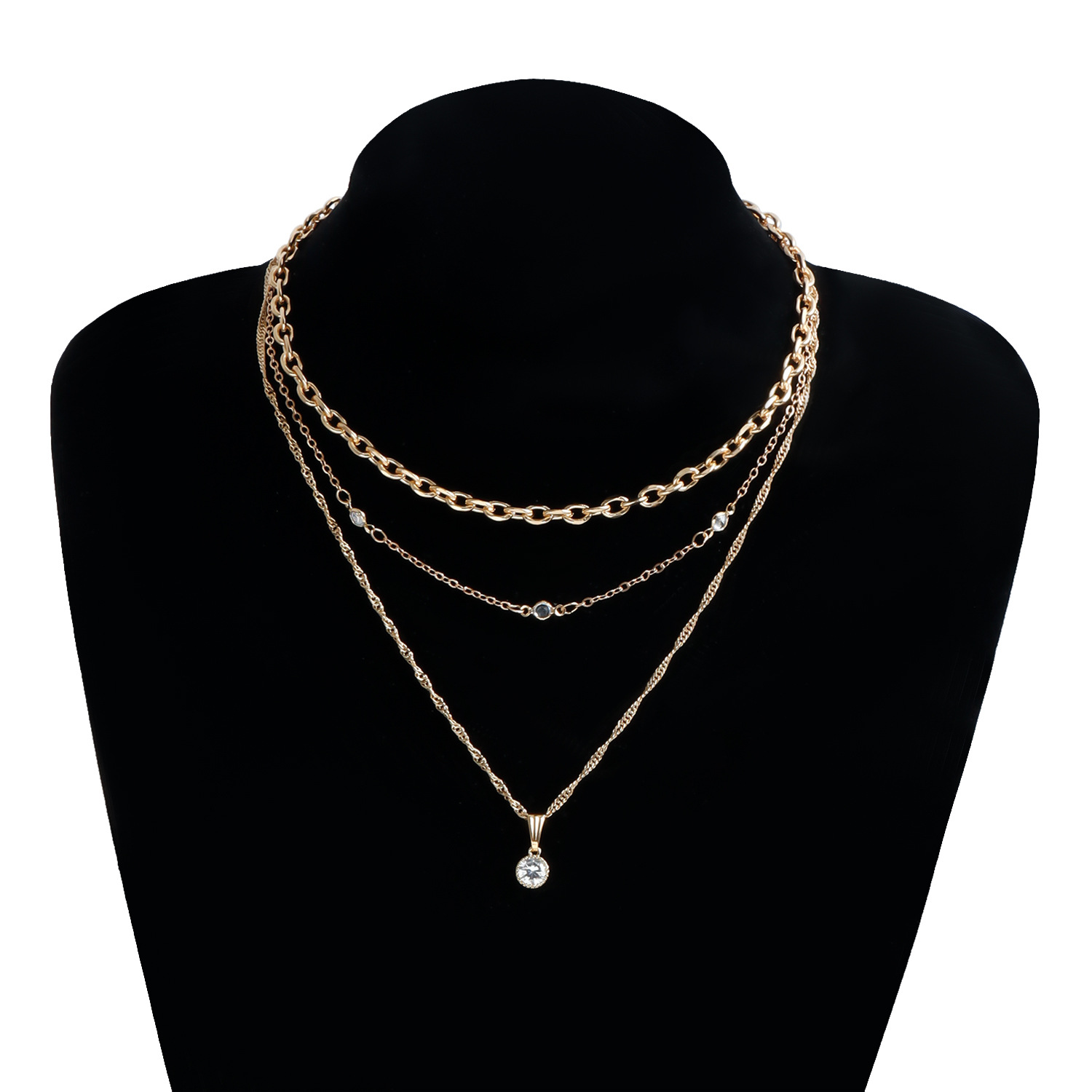 Collier de mode Multi couche, alliage de zinc, Placage, trois couches & pour femme & avec strass, doré, Vendu par PC