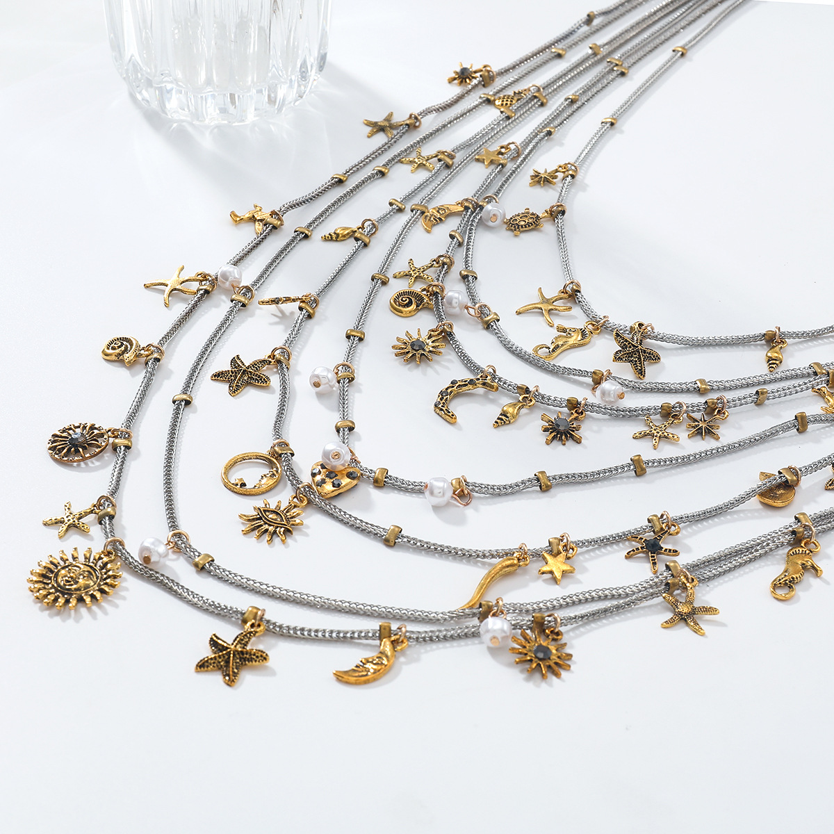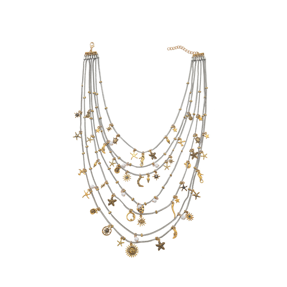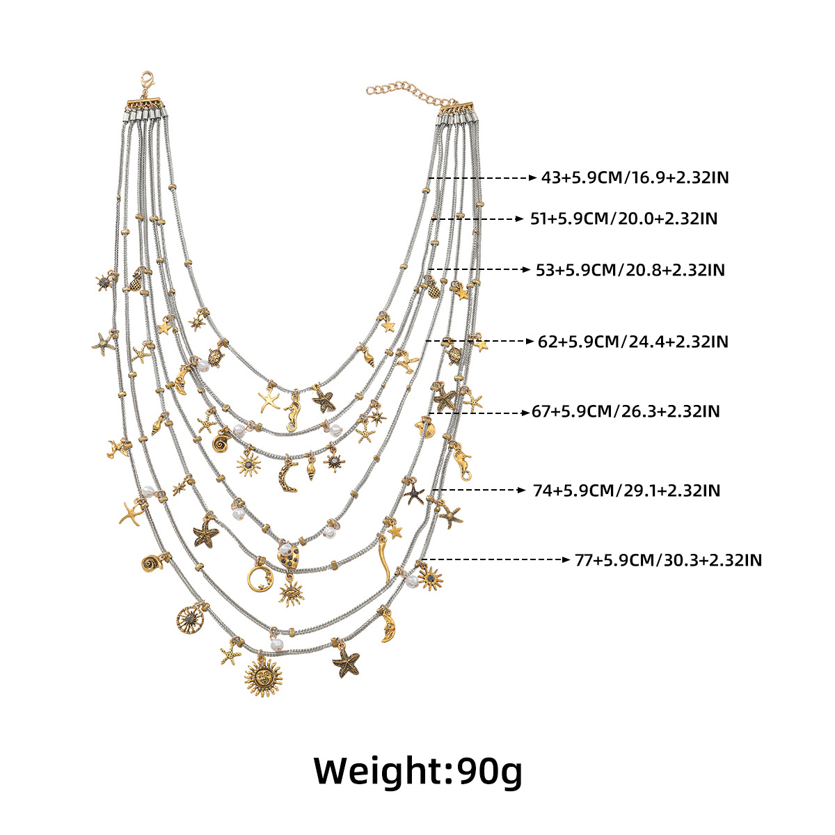Collier de mode Multi couche, alliage de zinc, avec chaîne de fer, avec 6cm chaînes de rallonge, Lune et Etoile, Placage de couleur d'or, chaîne ovale & avec strass & 2 fils, protéger l'environnement, sans nickel, plomb et cadmium - Environ 15.5 pouce, Vendu par brin