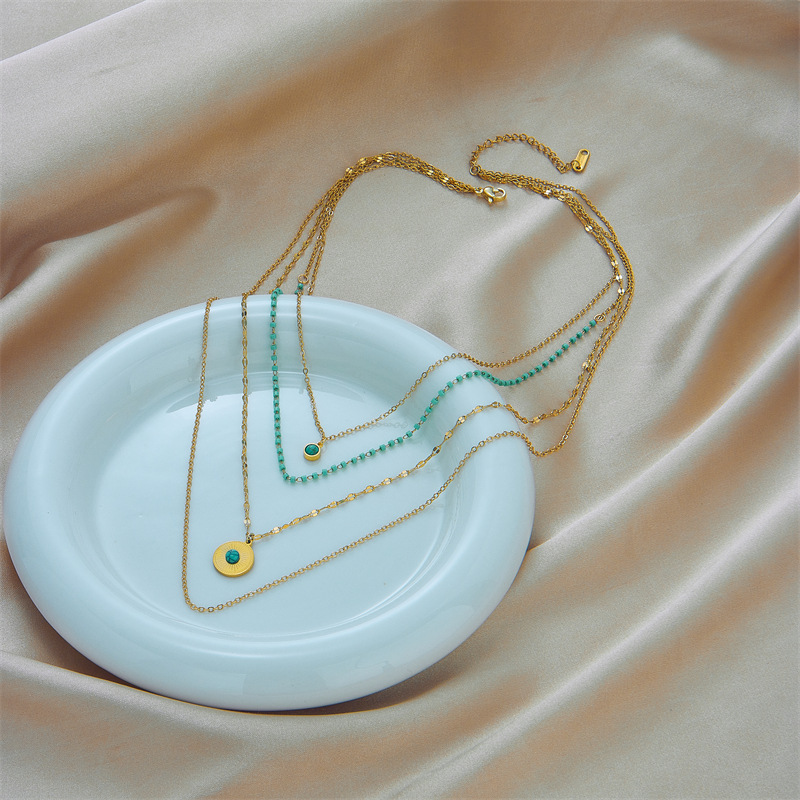 Collier de mode Multi couche, Acier inoxydable 304, avec Pierre naturelle, Placage de couleur d'or, bijoux de mode & multicouche, plus de couleurs à choisir, Vendu par PC