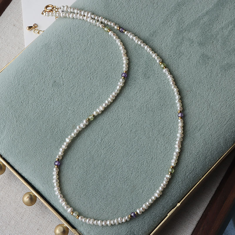 Collier de perles cristal d'eau douce, perle d'eau douce cultivée, avec cristal & laiton, Irrégulière, Placage, bijoux de mode, blanc, 2-3mm, Longueur:45 cm, Vendu par PC