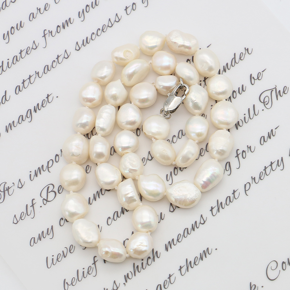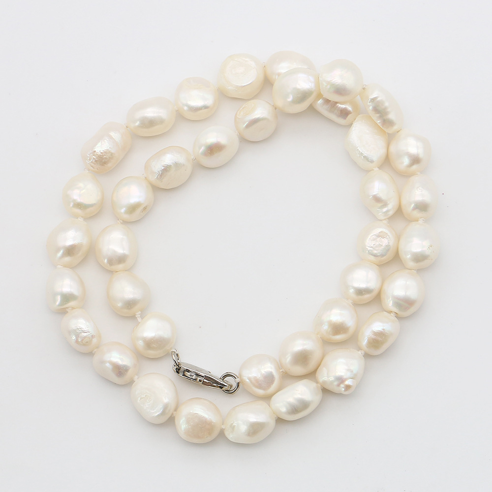 Collier de perles d'eau douce naturelles, perle d'eau douce cultivée, avec Acier inoxydable 304, Irrégulière, bijoux de mode, blanc, 9-10mm, Longueur:43 cm, Vendu par PC