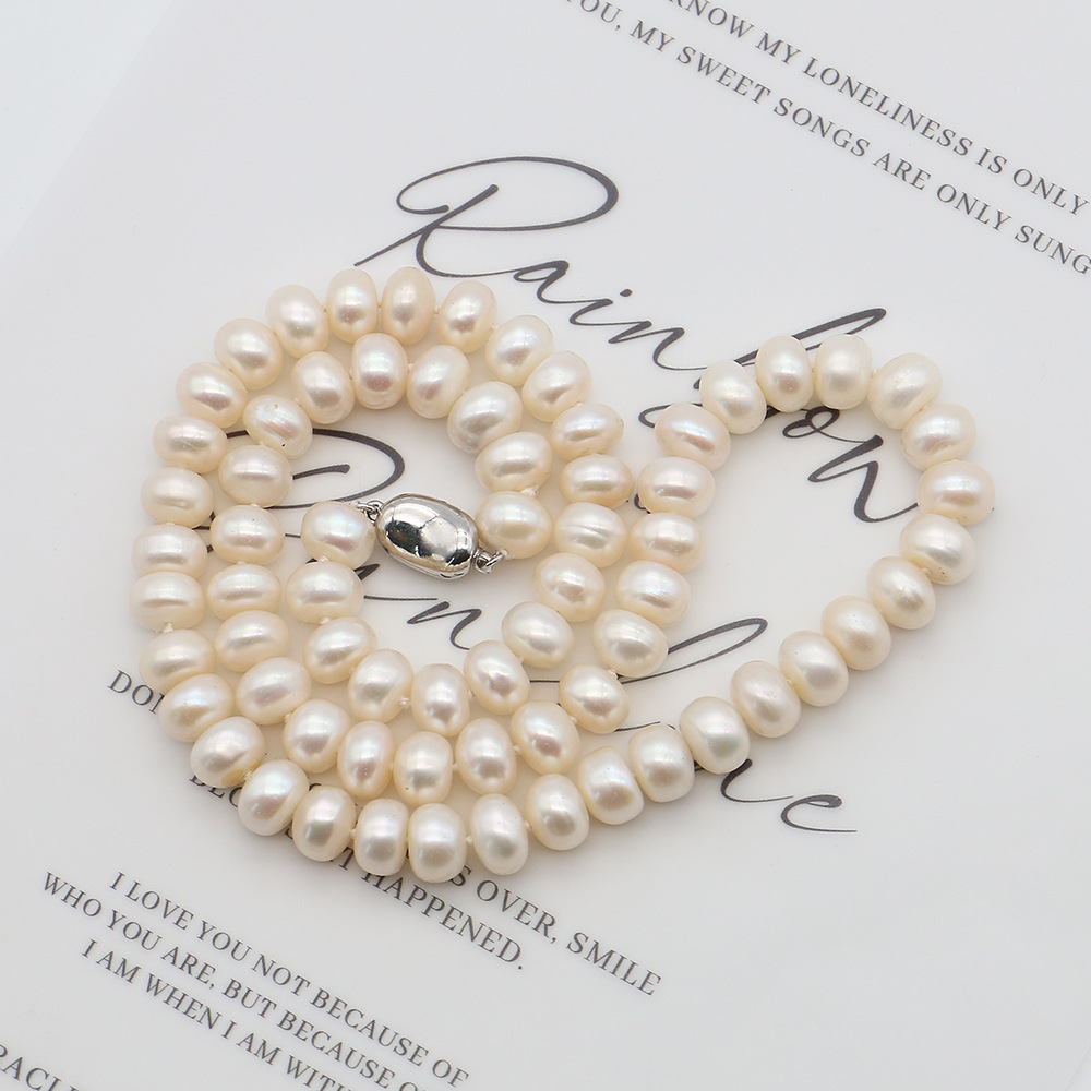 Collier de perles d'eau douce naturelles, perle d'eau douce cultivée, pomme de terre, bijoux de mode, blanc, 6-7mm cm, Vendu par brin
