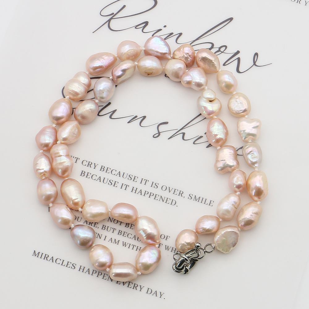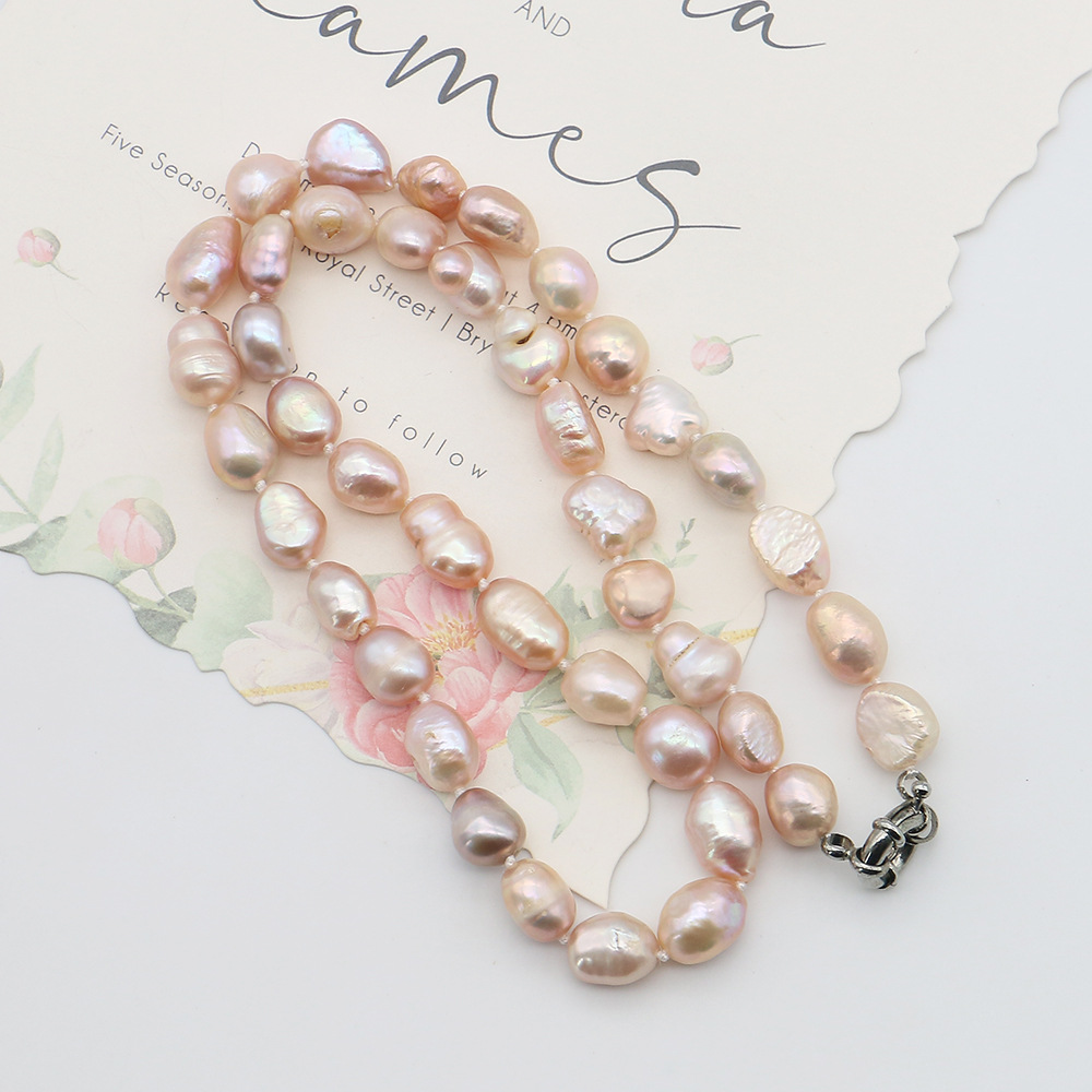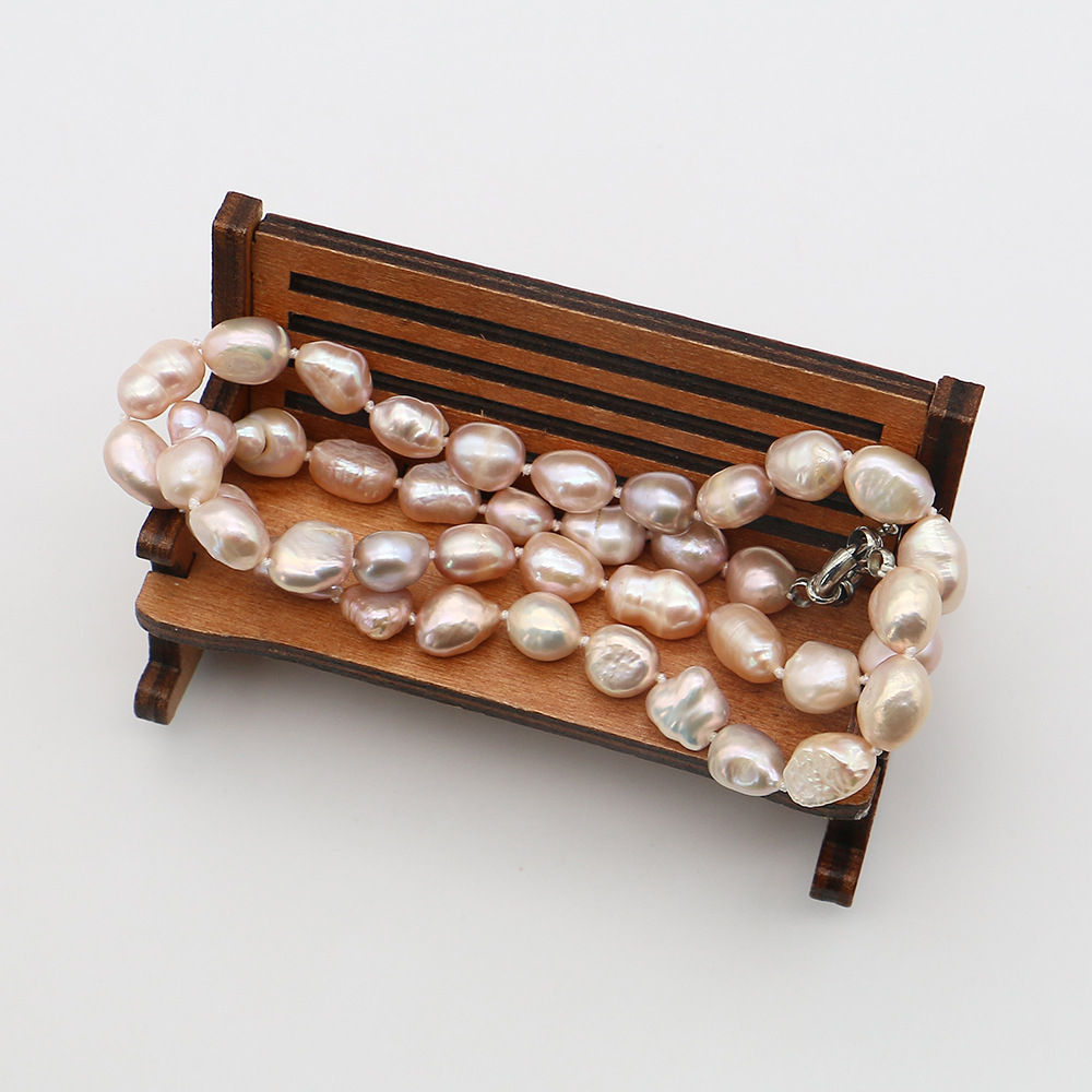 Collier de perles d'eau douce naturelles, perle d'eau douce cultivée, avec Acier inoxydable 304, Baroque, bijoux de mode, couleurs mélangées, 9-10mm, Longueur:47 cm, Vendu par brin