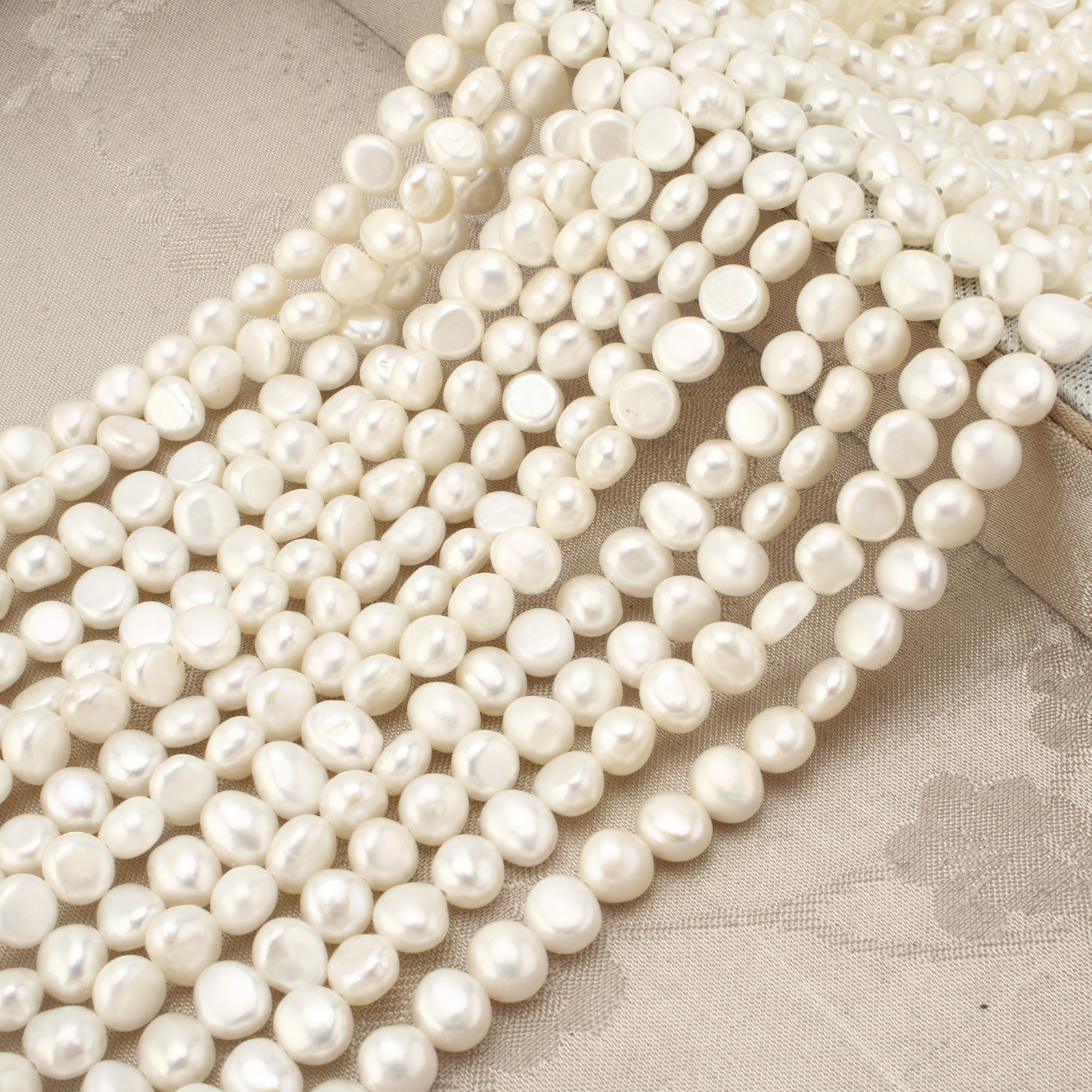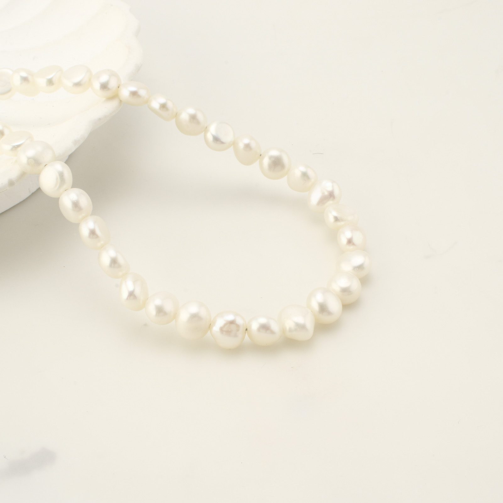 Collier de perles d'eau douce naturelles, perle d'eau douce cultivée, pomme de terre, bijoux de mode, blanc, 6-7mm cm, Vendu par brin