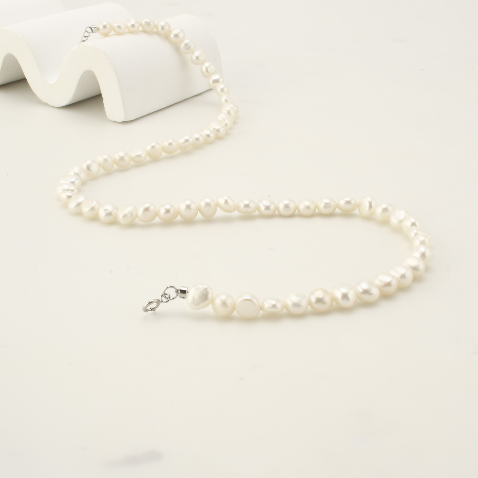Collier de perles d'eau douce naturelles, perle d'eau douce cultivée, Baroque, bijoux de mode, blanc, 6-7.5mm cm, Vendu par brin