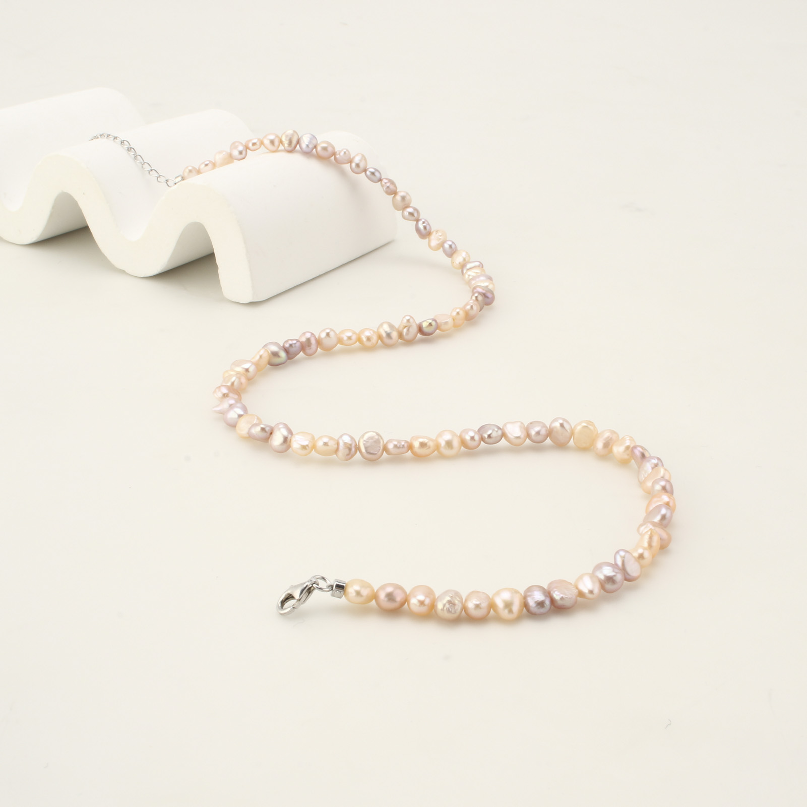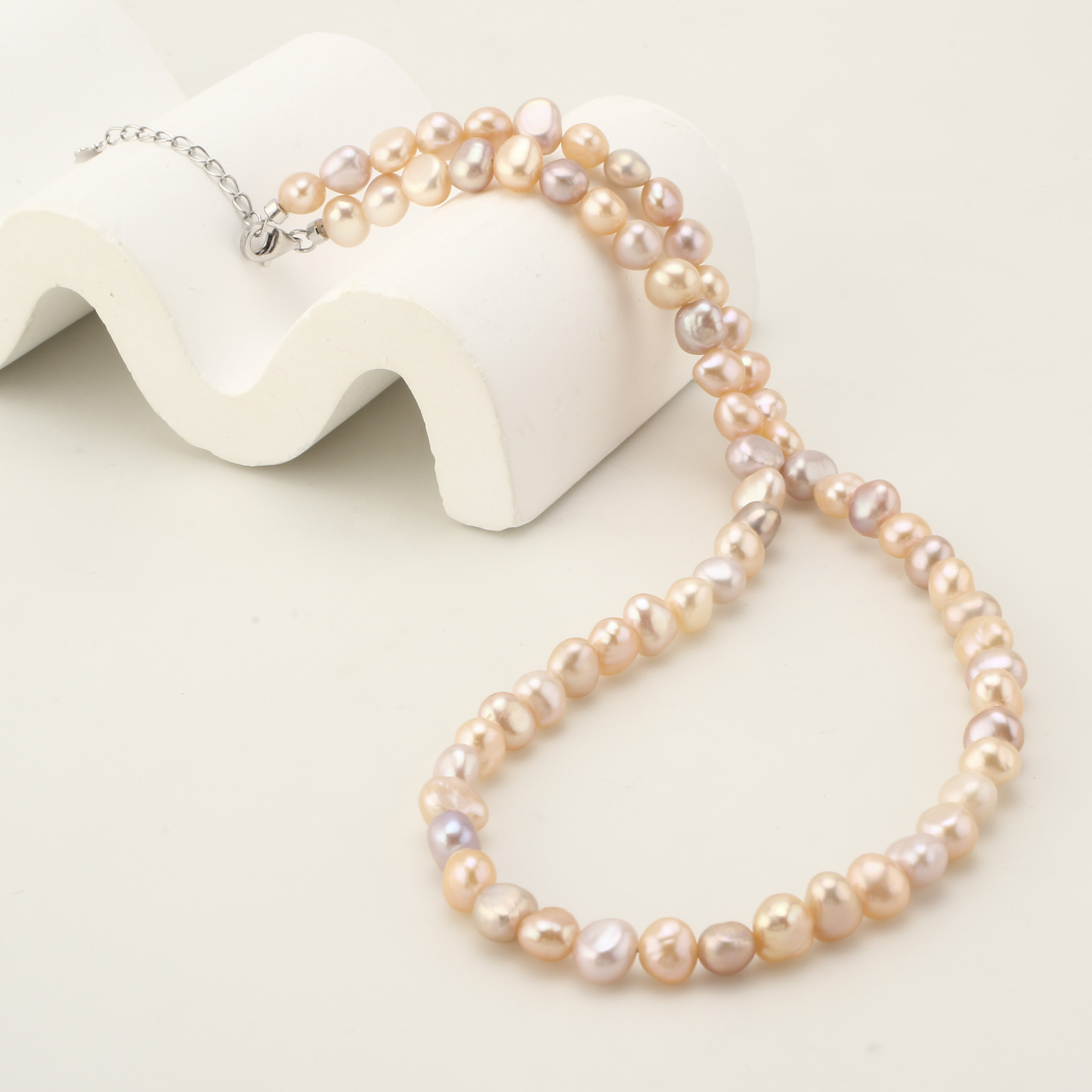Collier de perles d'eau douce naturelles, perle d'eau douce cultivée, Irrégulière, bijoux de mode, couleurs mélangées, 6-7mm, Longueur:45 cm, Vendu par brin