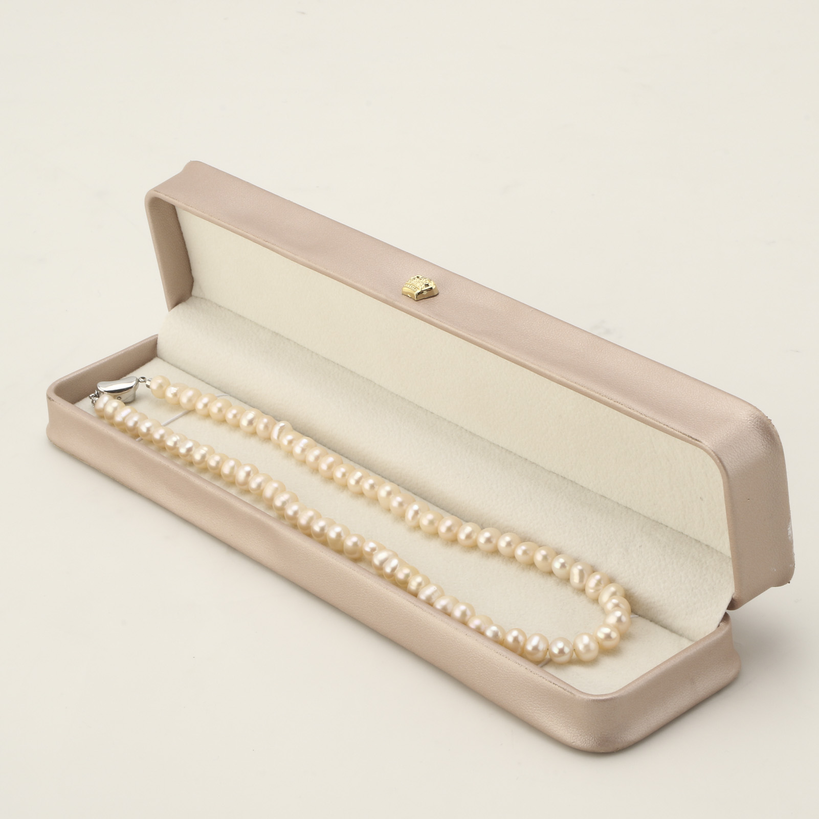 Collier de perles d'eau douce naturelles, perle d'eau douce cultivée, Rond, bijoux de mode, Champagne, 6-7mm, Longueur:45 cm, Vendu par brin