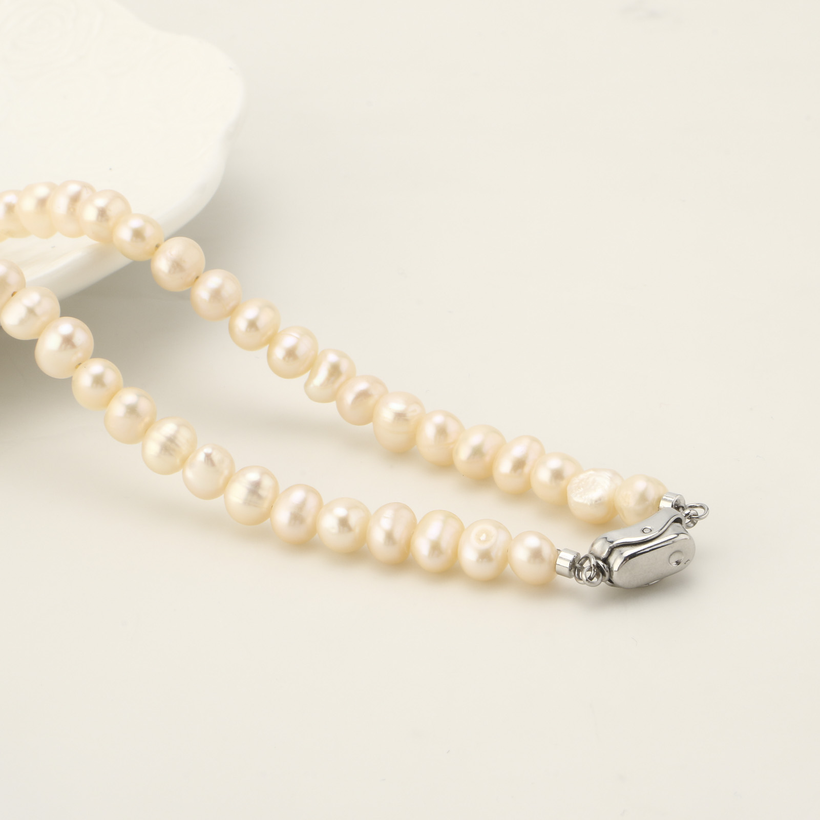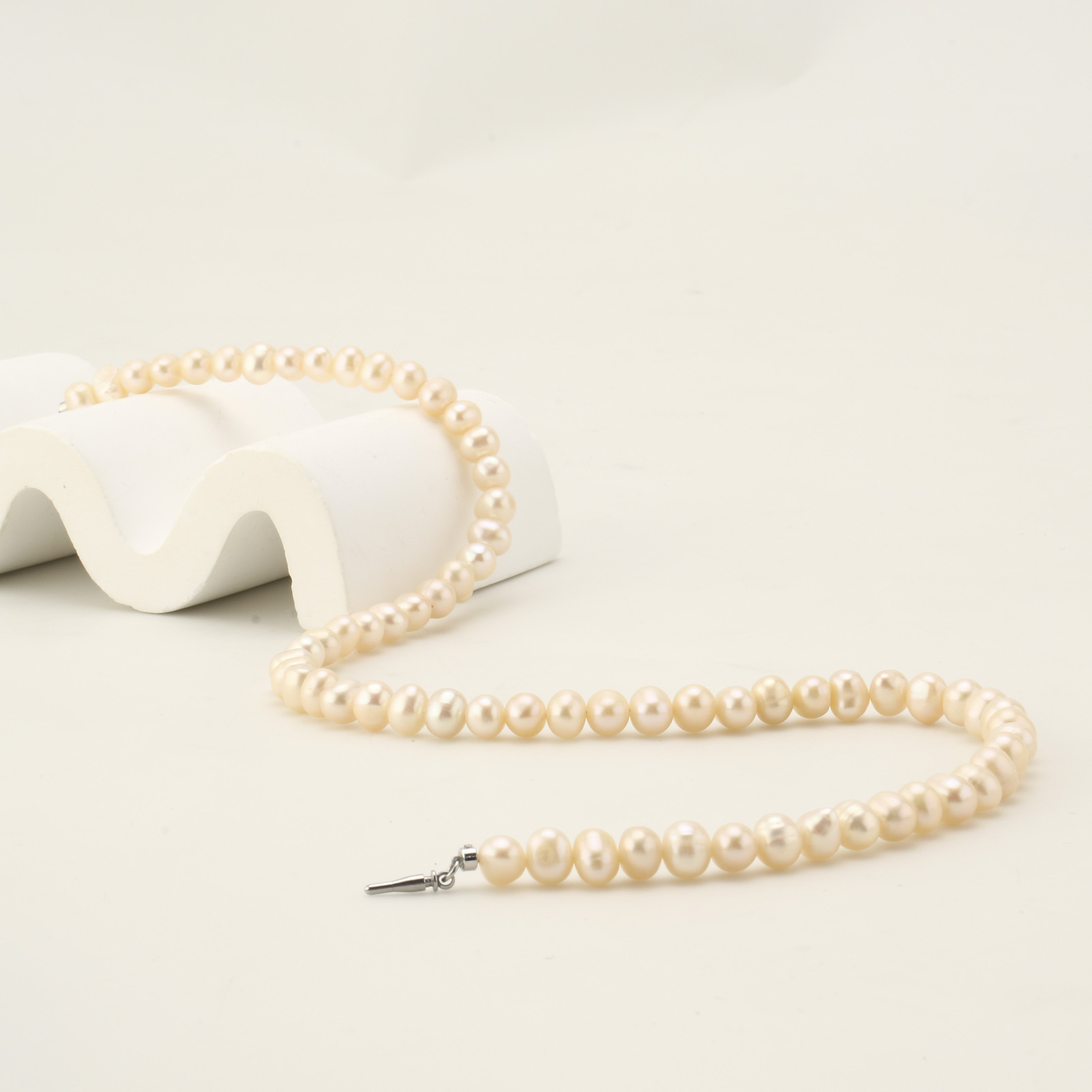 Collier de perles d'eau douce naturelles, perle d'eau douce cultivée, pomme de terre, bijoux de mode, blanc, 6-7mm cm, Vendu par brin