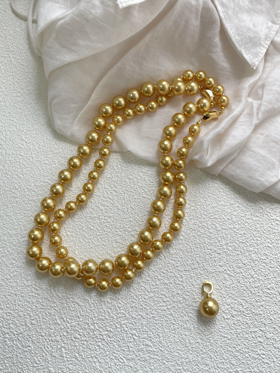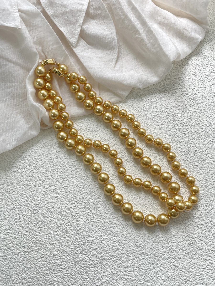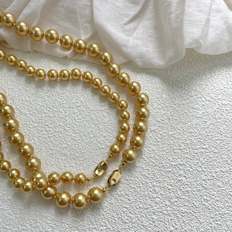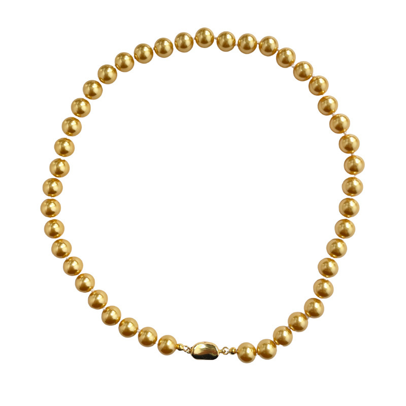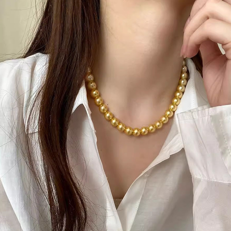 Collier de perles de verre, perle de verre, DIY, doré, 8-10mm, Vendu par brin