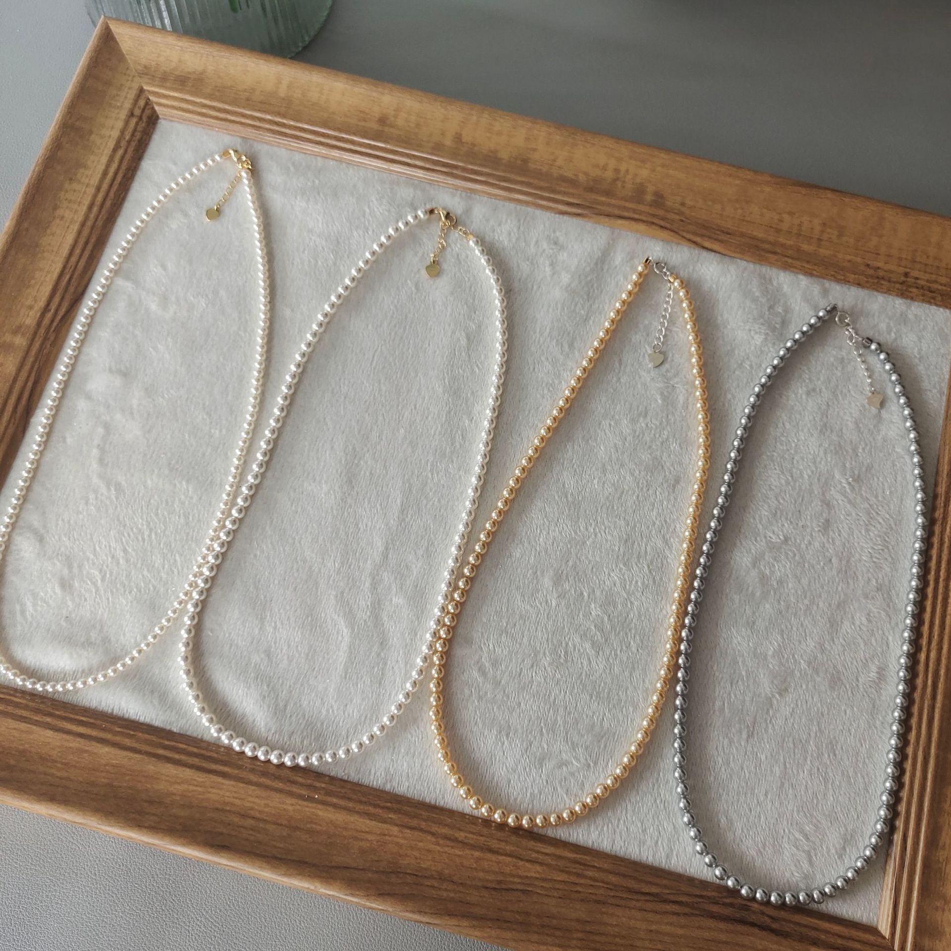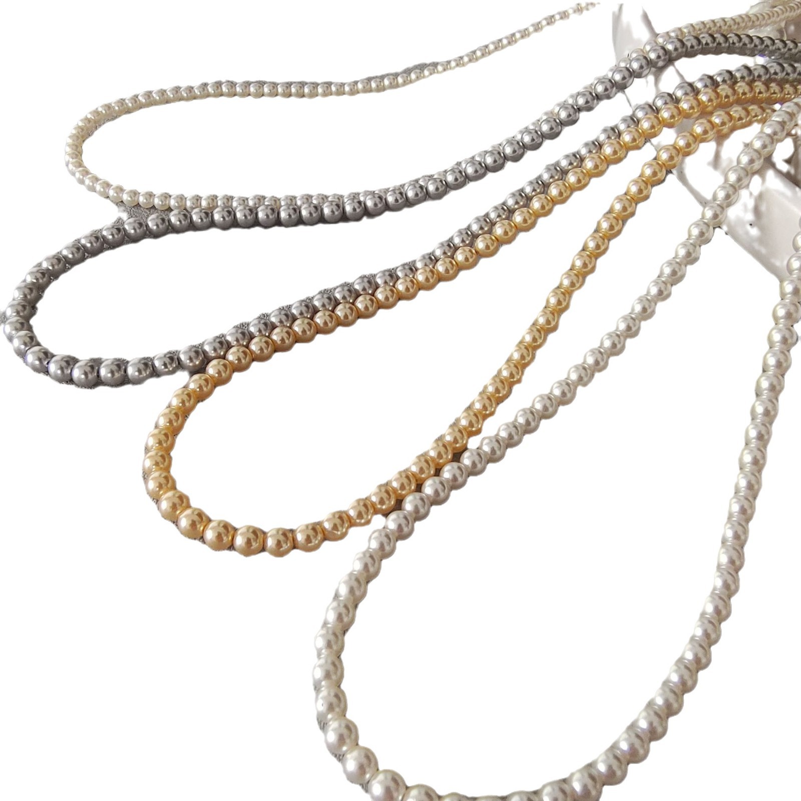 Collier de perles de verre, perle de verre, Placage de couleur d'or, bijoux de mode, plus de couleurs à choisir, 3-4mm, Longueur:40 cm, Vendu par brin