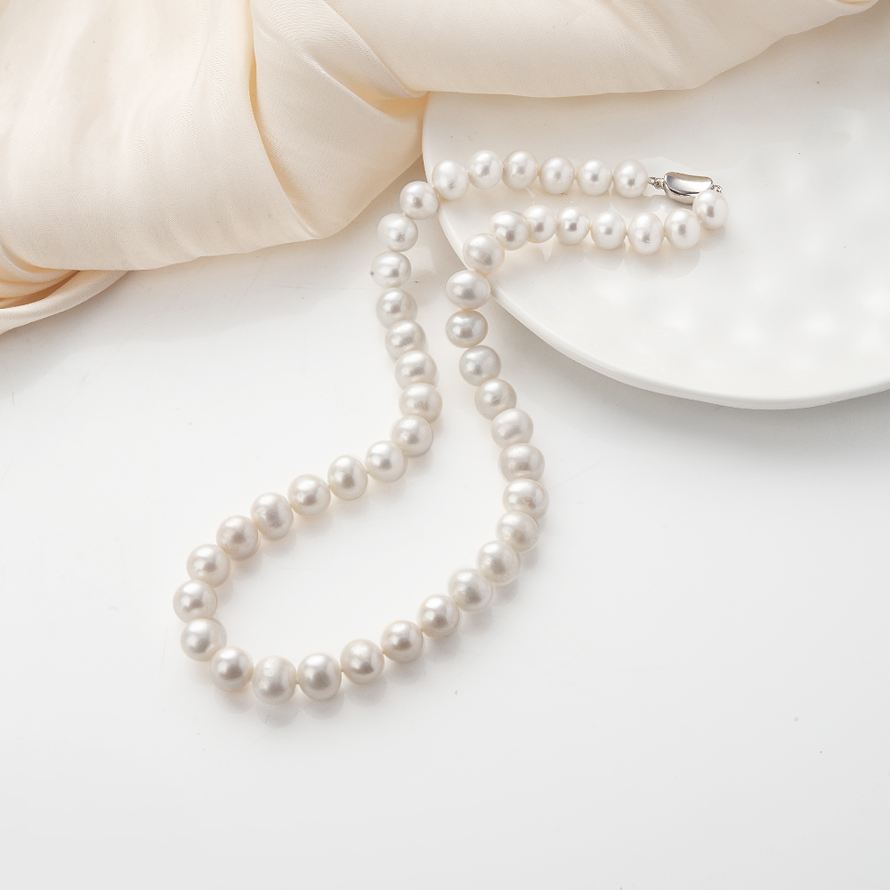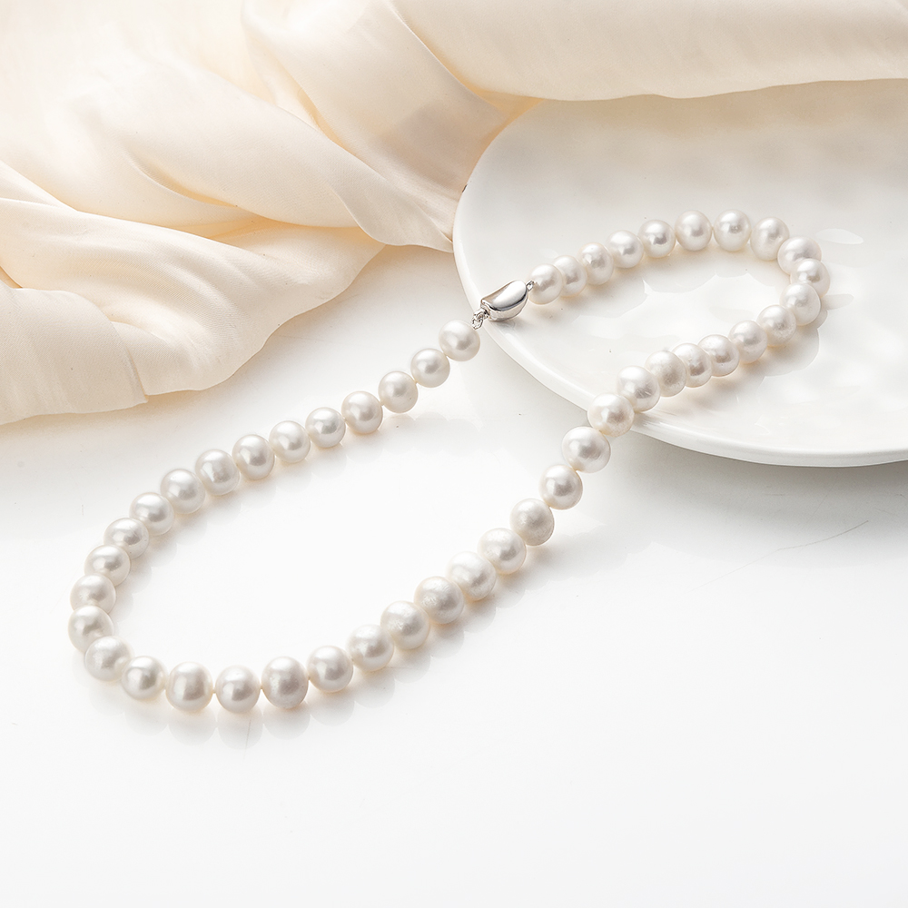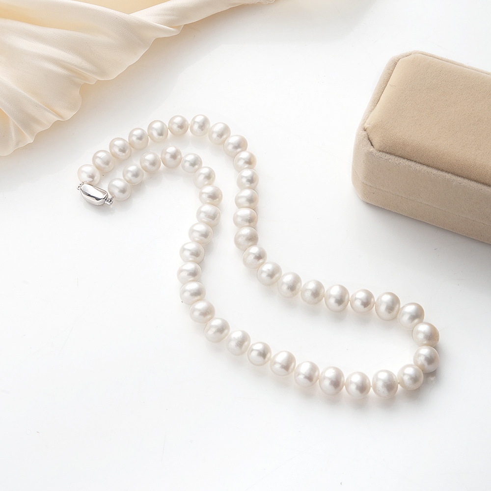 Collier de perles d'eau douce naturelles, perle d'eau douce cultivée, Rond, Placage de couleur argentée, Avec boîte d'emballage & pour femme, Longueur:45 cm, Vendu par PC