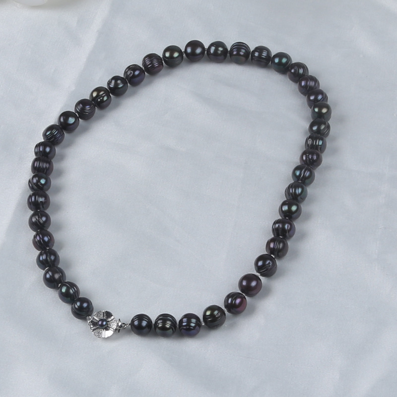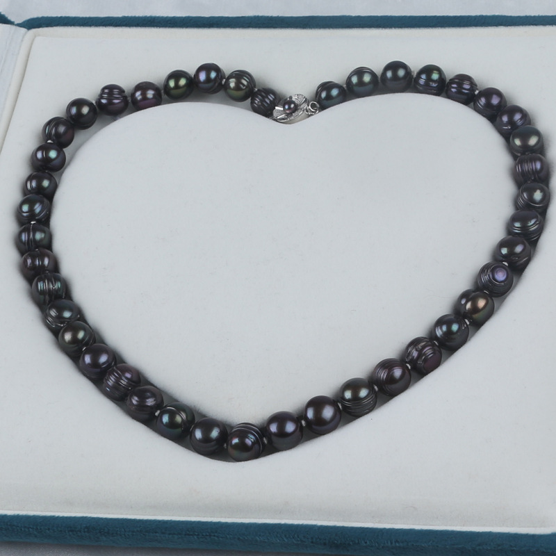 Collier de perles d'eau douce naturelles, perle d'eau douce cultivée, Rond, pour femme, noire, About:10-11mm, Vendu par PC