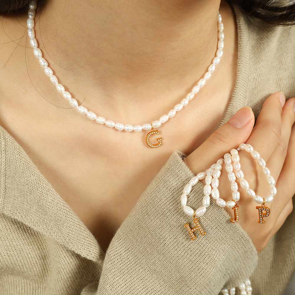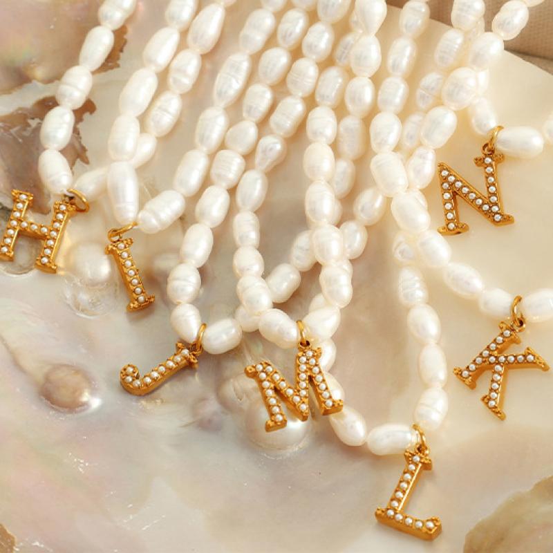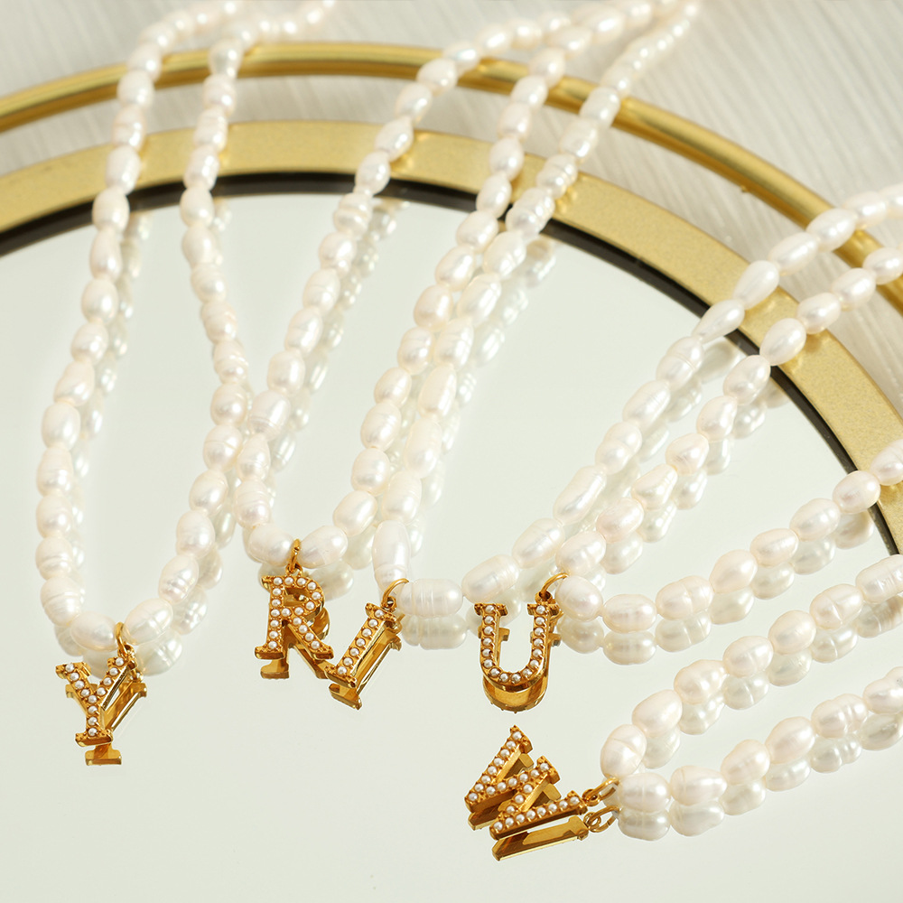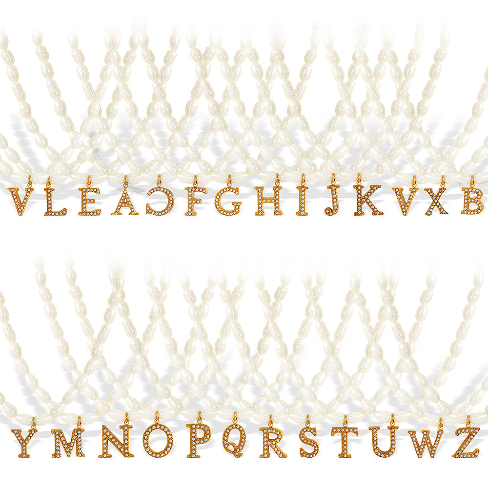Collier de perles d'eau douce naturelles, alliage de zinc, avec chaîne de fer & perle, Placage de couleur platine, styles différents pour le choix & avec le motif de lettre & pour femme & creux, sans plomb et cadmium - Environ 17.5 pouce, Vendu par brin