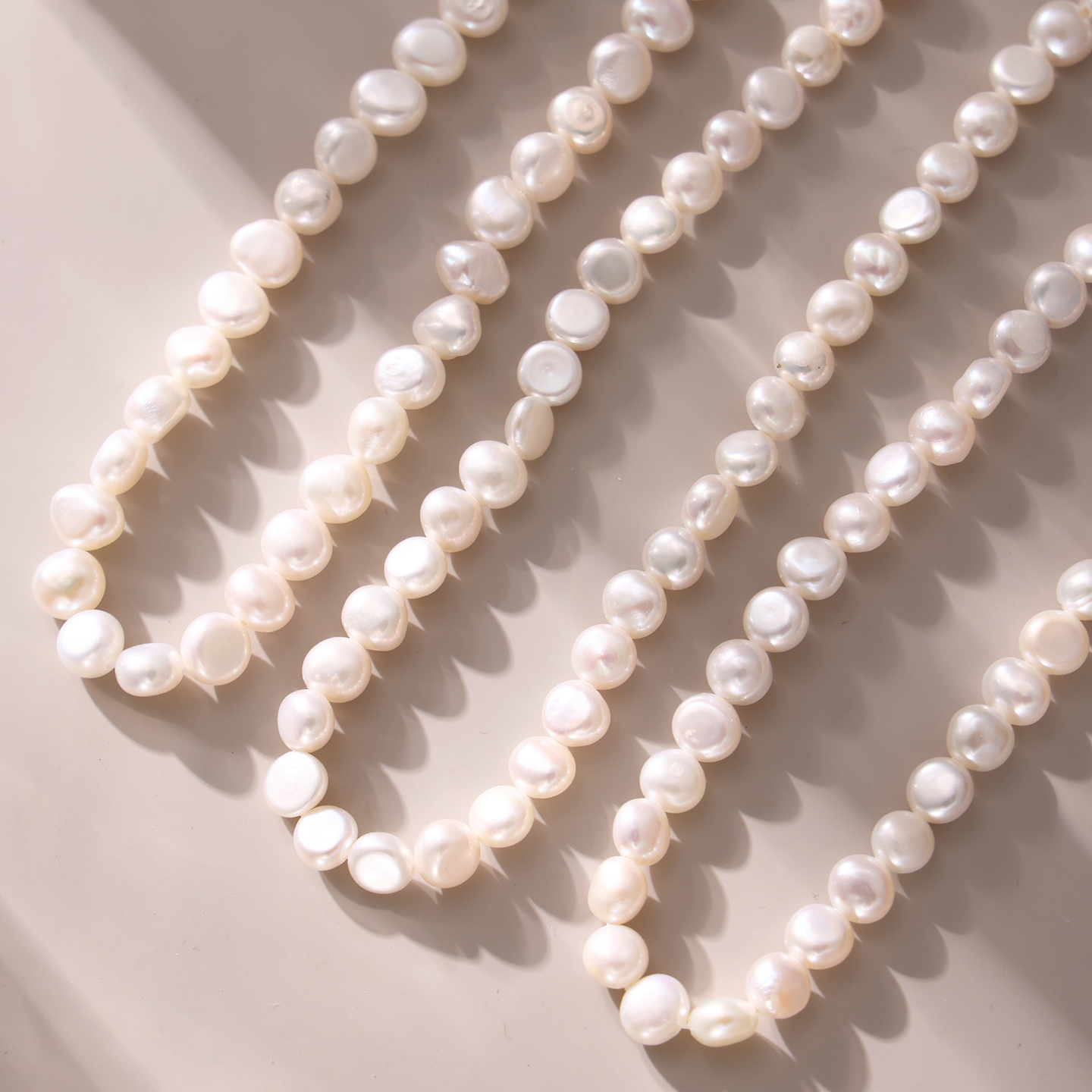 Collier de perles d'eau douce naturelles, perle d'eau douce cultivée, Baroque, bijoux de mode, blanc, 6-7.5mm cm, Vendu par brin
