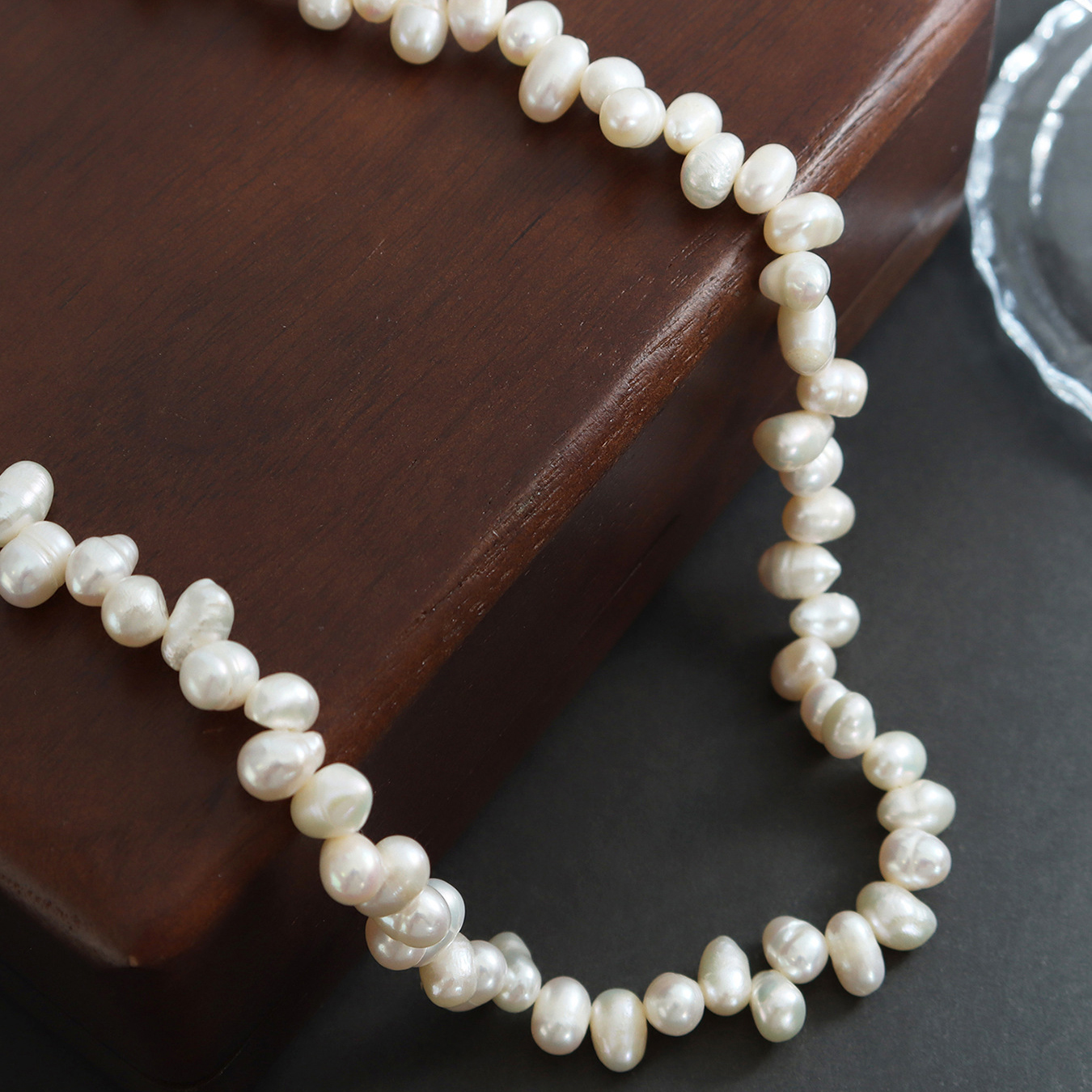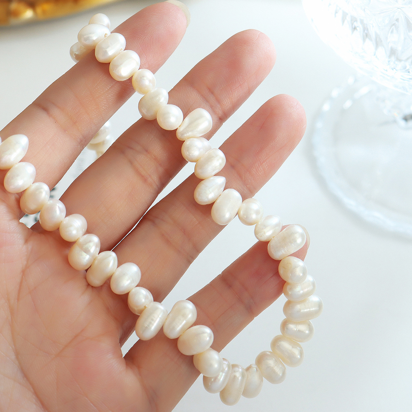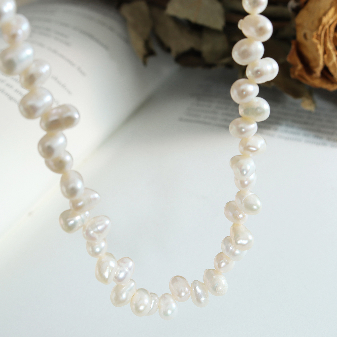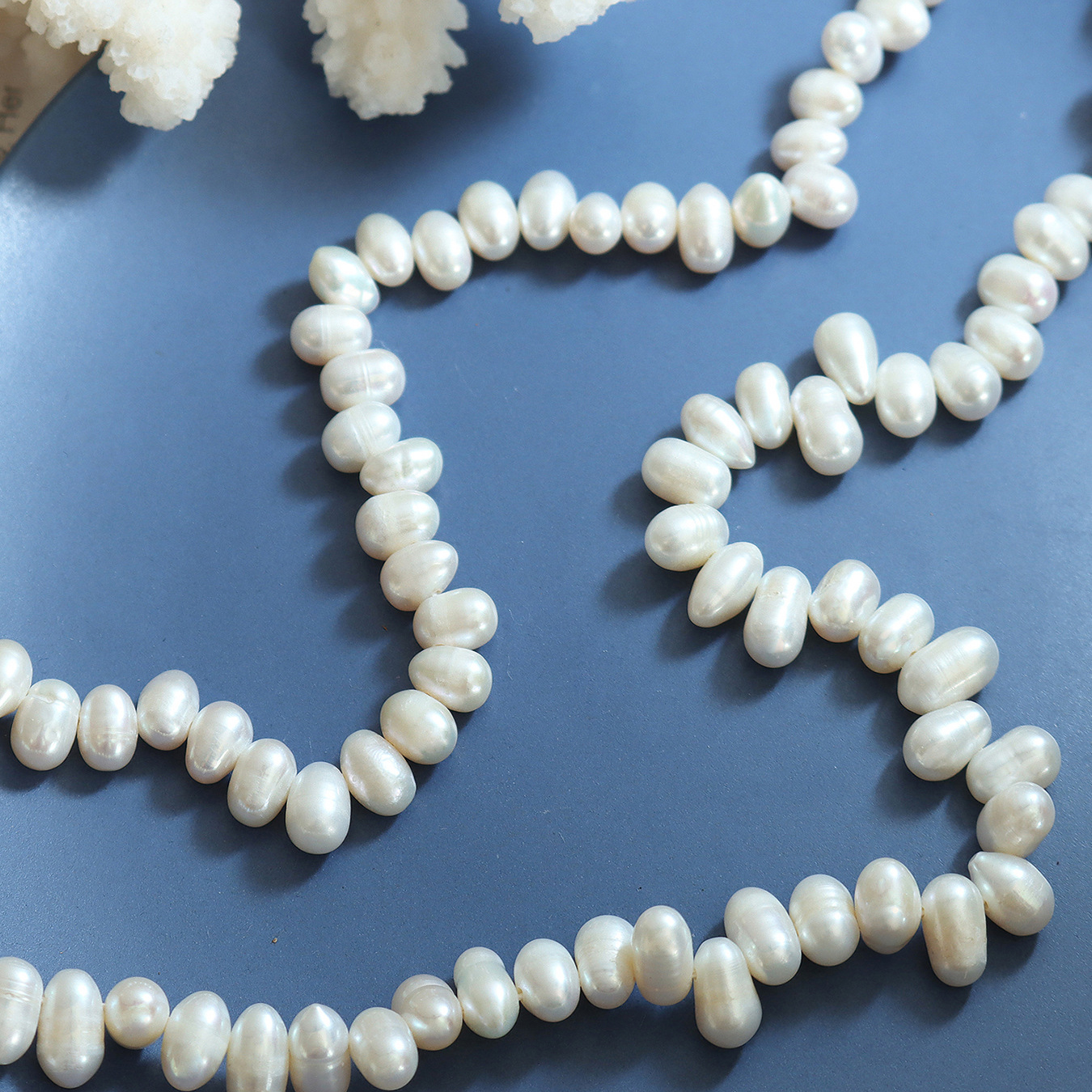 Collier de perles d'eau douce naturelles, perle d'eau douce cultivée, pomme de terre, bijoux de mode, blanc, 6-7mm cm, Vendu par brin