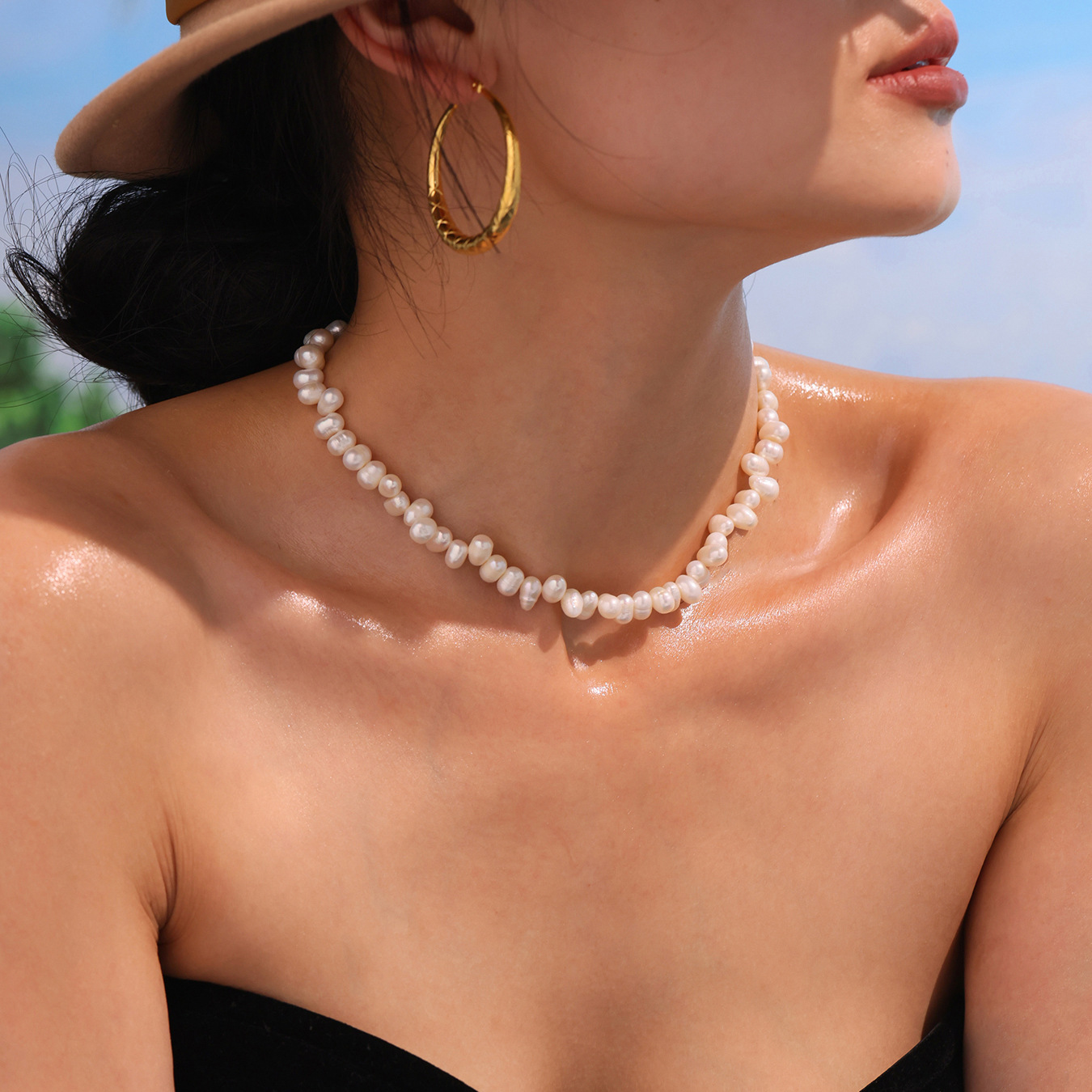 Collier de perles d'eau douce naturelles, perle d'eau douce cultivée, Baroque, bijoux de mode, blanc, 6-7.5mm cm, Vendu par brin