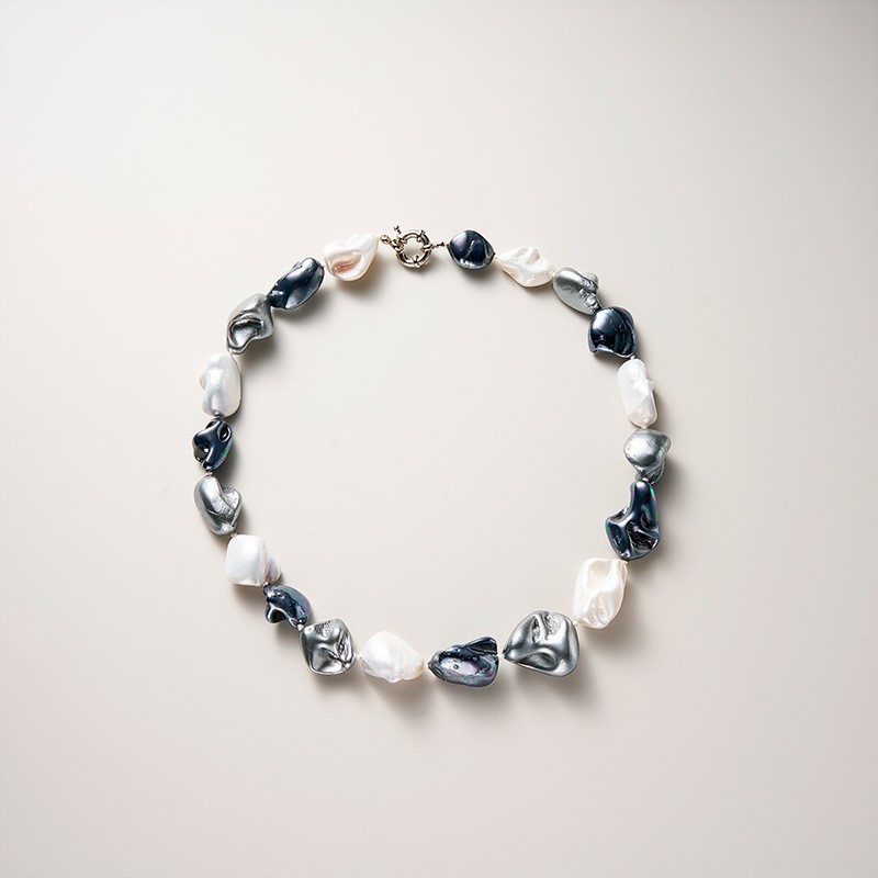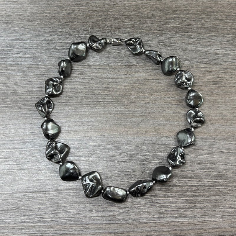 Plastique ABS perle collier, avec chaîne de fer, Placage de couleur d'or, gris, 30-40mm Environ 19 pouce, Vendu par brin