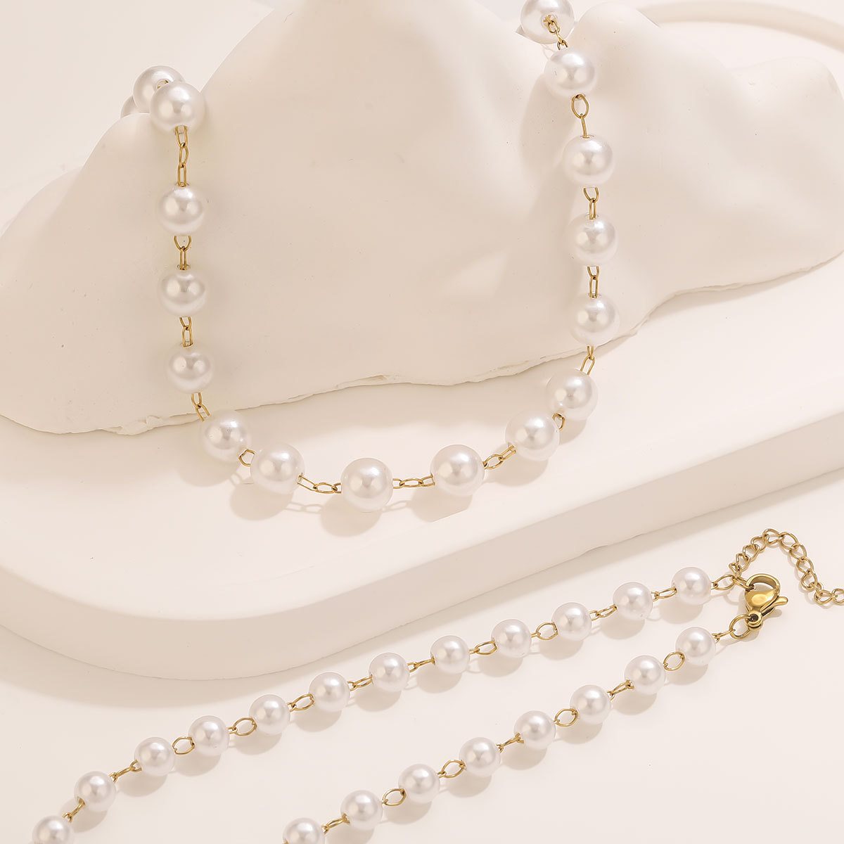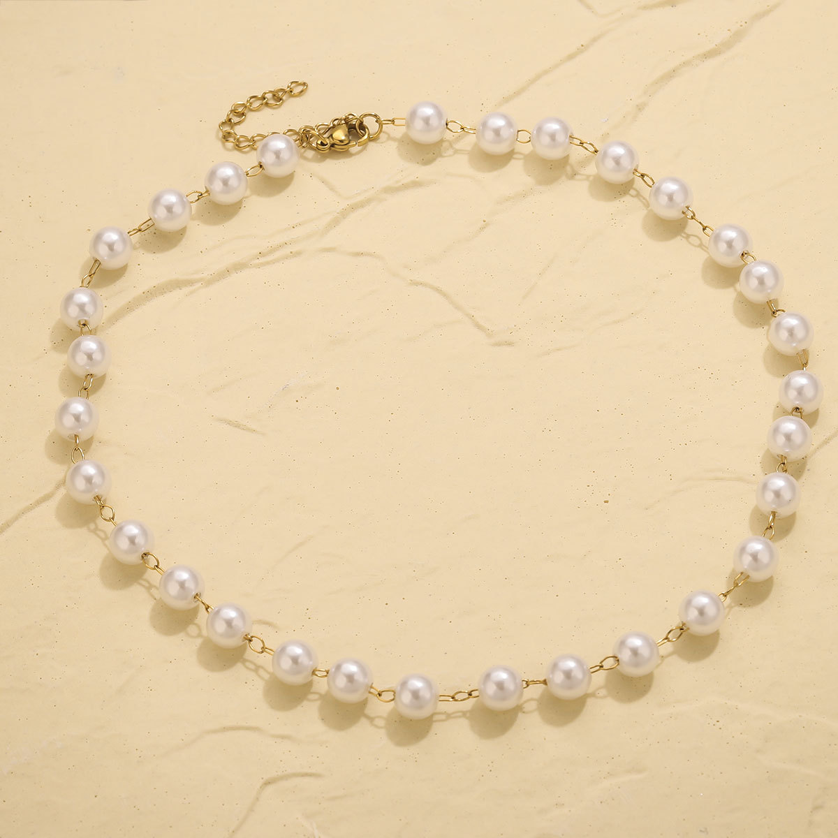 Collier de perles en plastique, perle de plastique, avec Acier inoxydable 304, bijoux de mode, blanc, 8mm cm, Vendu par brin