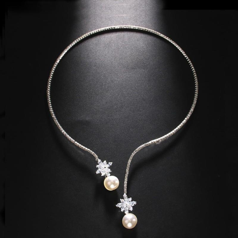 Collier de vetement, alliage de zinc, avec zircon cubique & perle de plastique, Placage, bijoux de mode & pour mariée, plus de couleurs à choisir, Vendu par PC