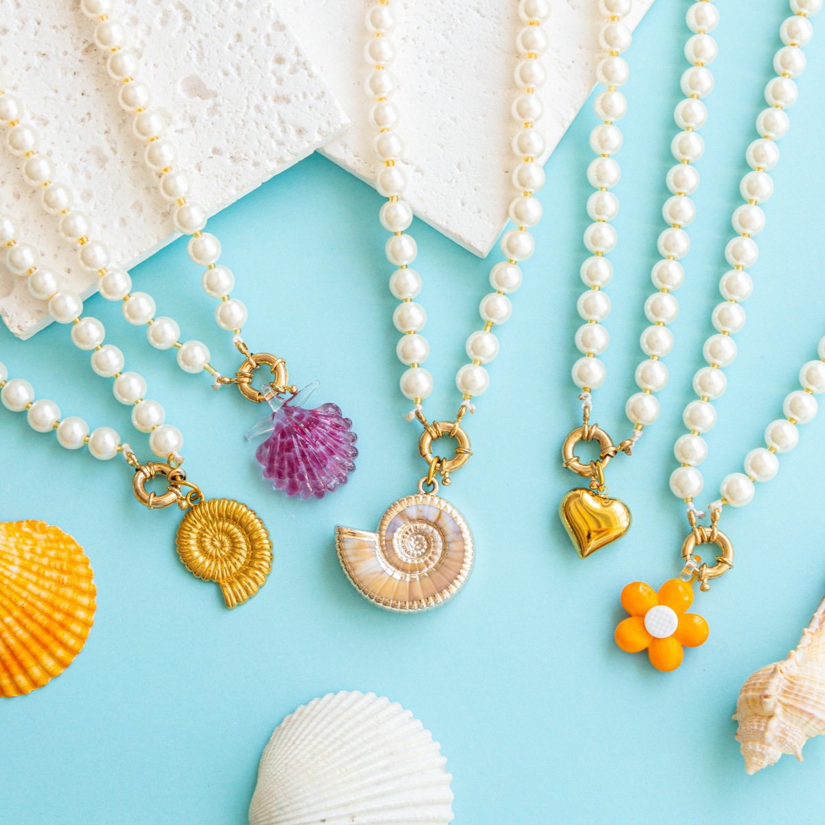 Collier en Murano bijoux, chalumeau, avec Cordon de cire & Ruban, étoile de mer, fleur intérieure pouce, Vendu par brin