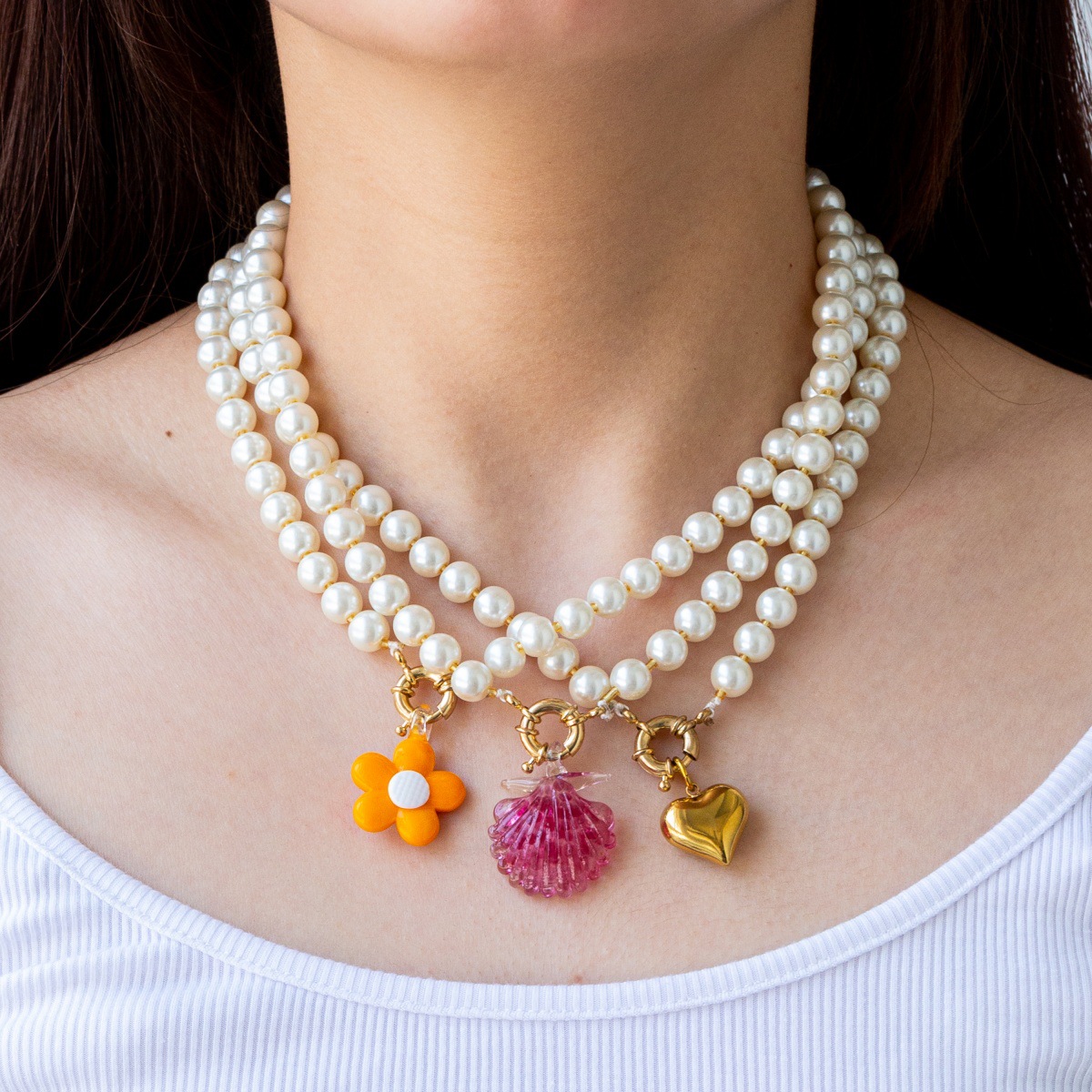 Collier en Murano bijoux, chalumeau, avec Ruban, coeur, fleur intérieure pouce, Vendu par brin