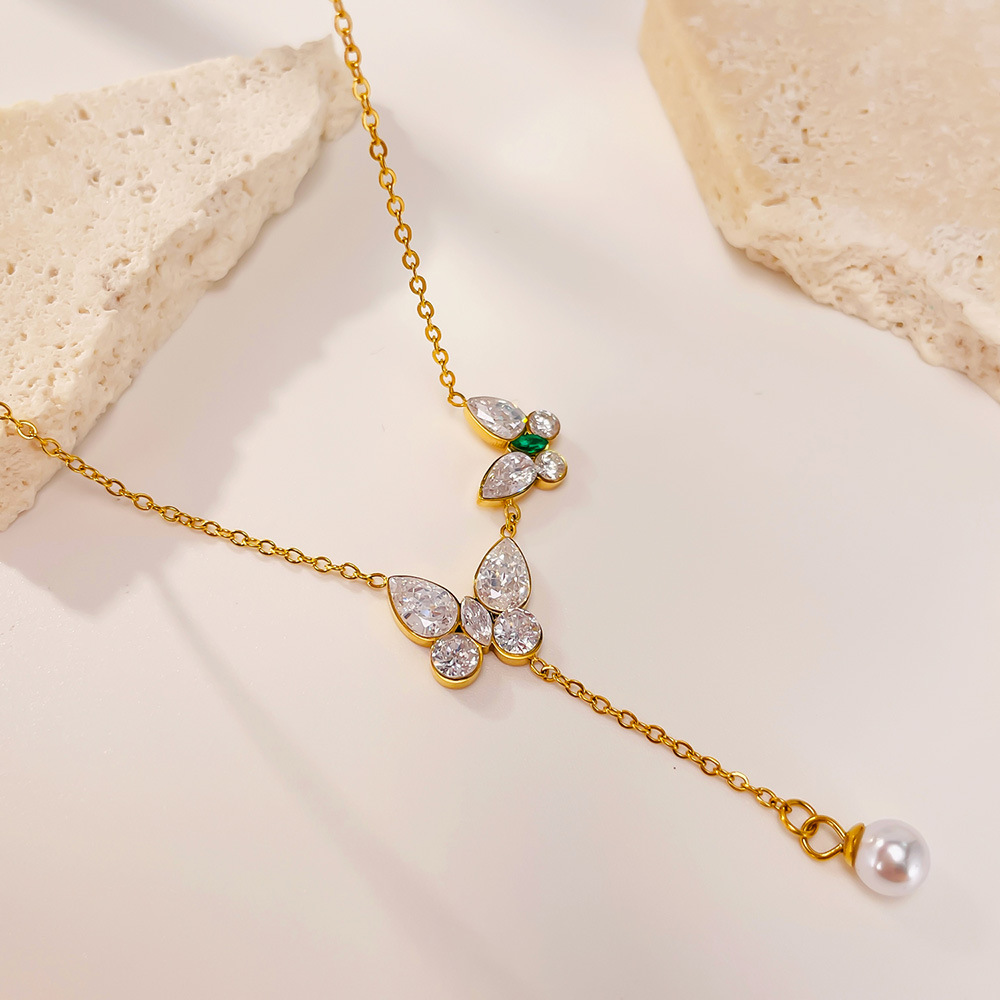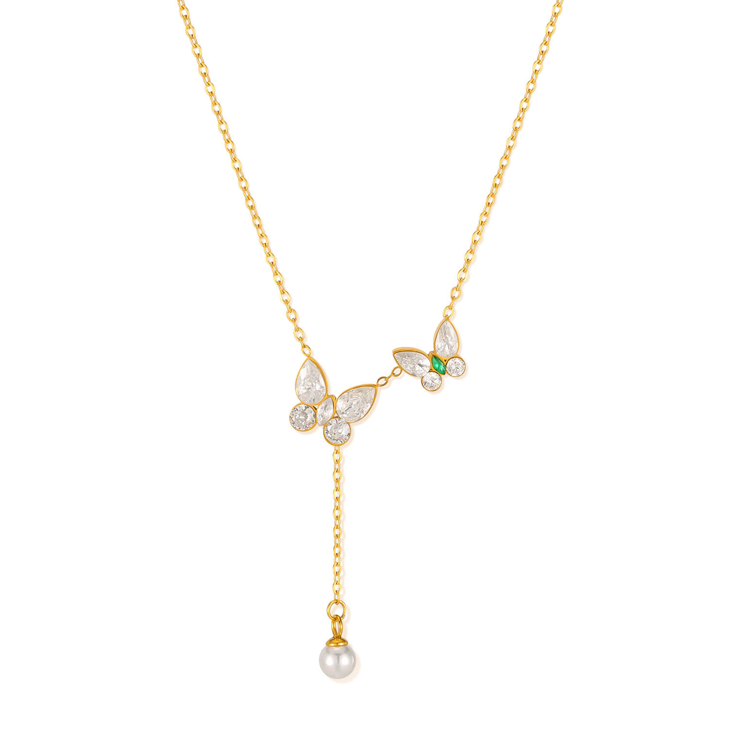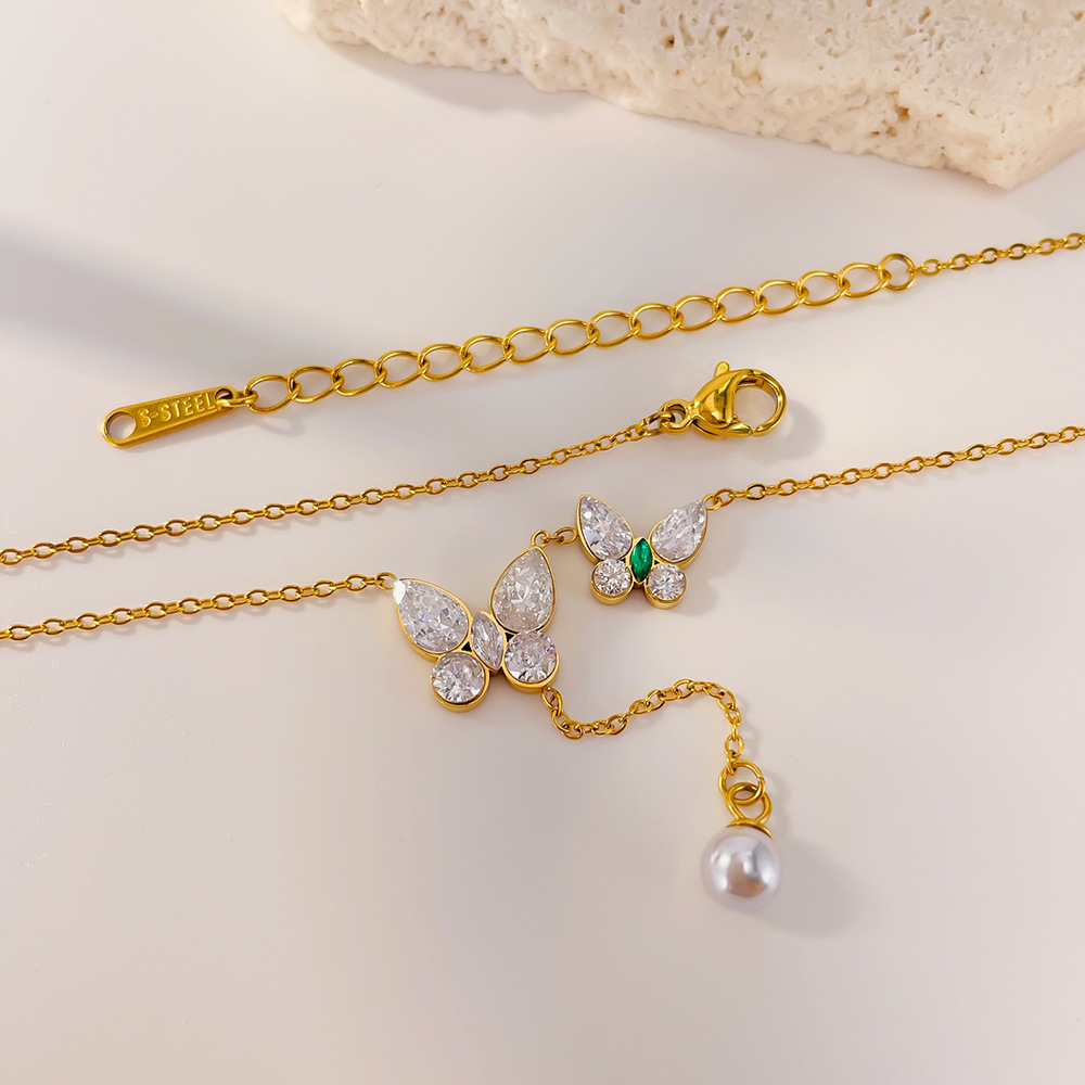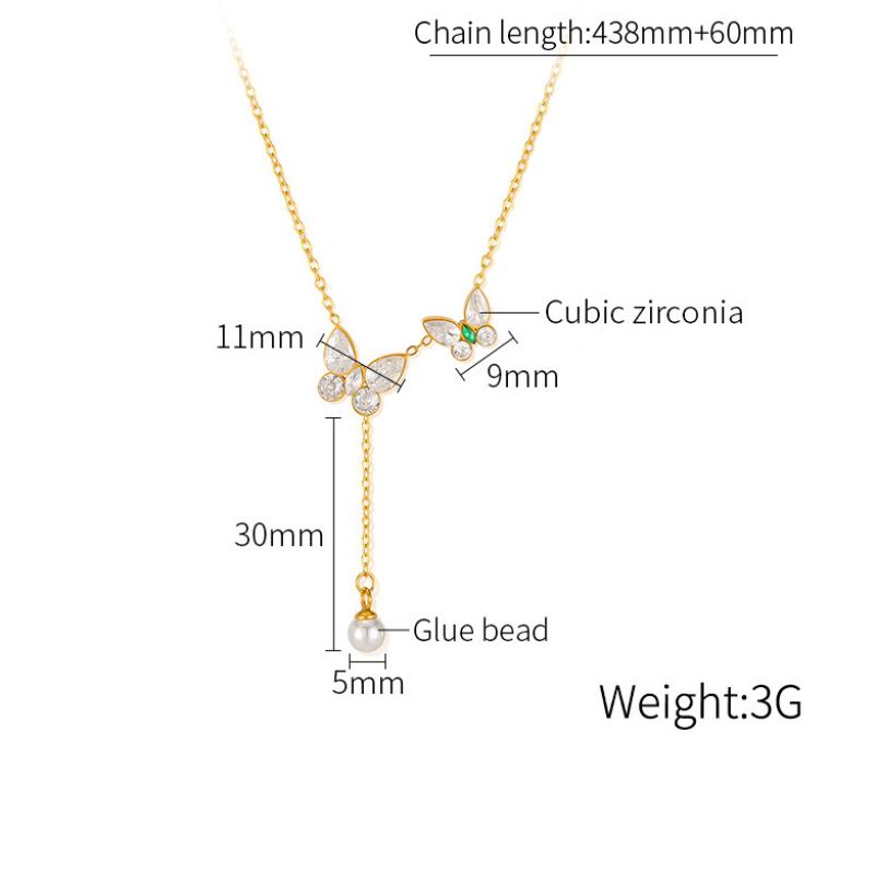 Collier en acier inoxydable Zircon, Acier inoxydable 304, avec zircon cubique & perle de plastique, avec 60mm chaînes de rallonge, Placage, bijoux de mode & pour femme, doré, Longueur:438 mm, Vendu par PC