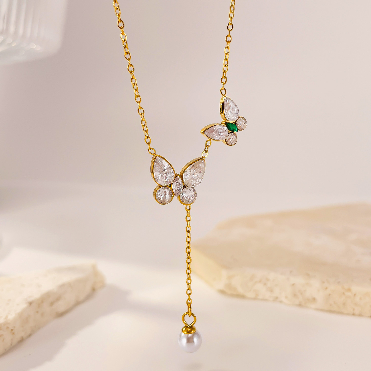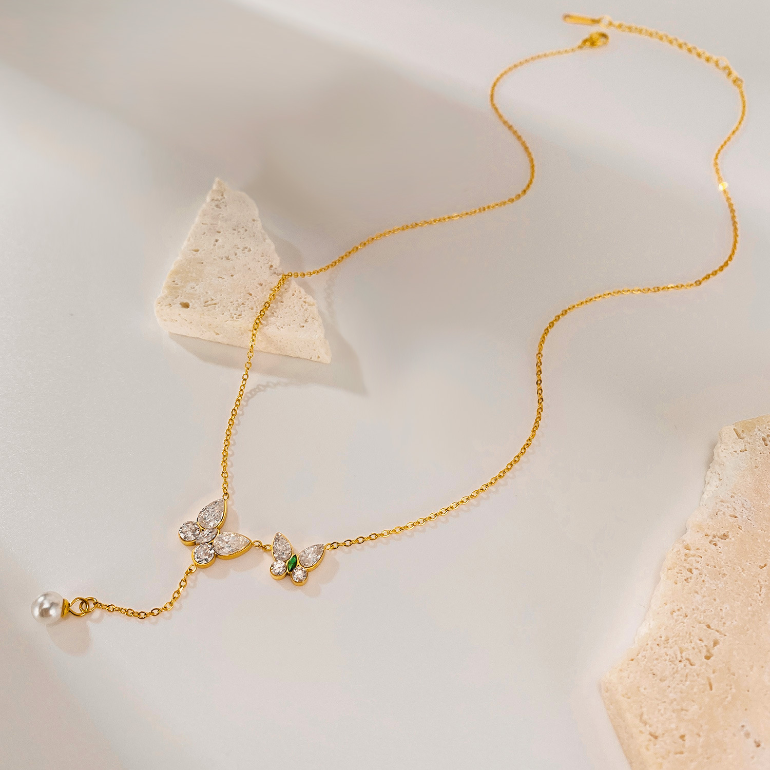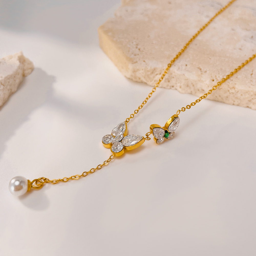 Collier en acier inoxydable Zircon, Acier inoxydable 304, avec zircon cubique & perle de plastique, avec 60mm chaînes de rallonge, Placage, bijoux de mode & pour femme, doré, Longueur:438 mm, Vendu par PC