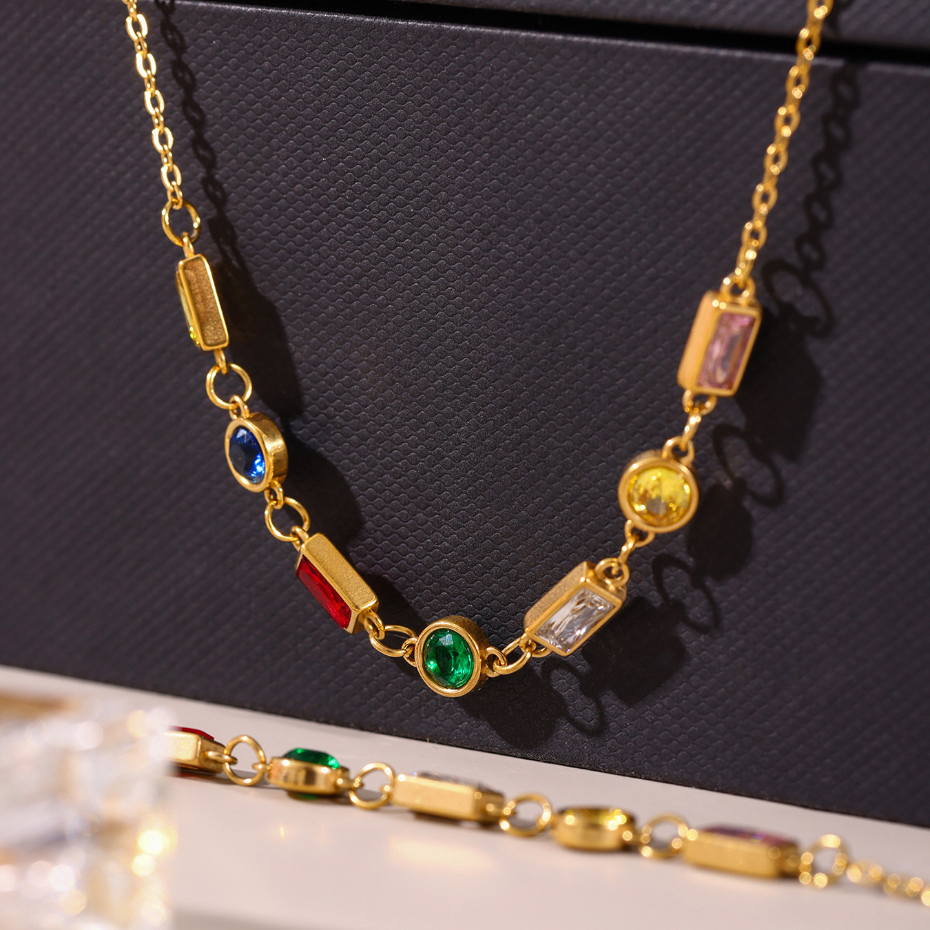 Collier en acier inoxydable Zircon, Placage, chaîne ovale & avec zircone cubique, plus de couleurs à choisir 1mm Environ 16 pouce, Vendu par brin