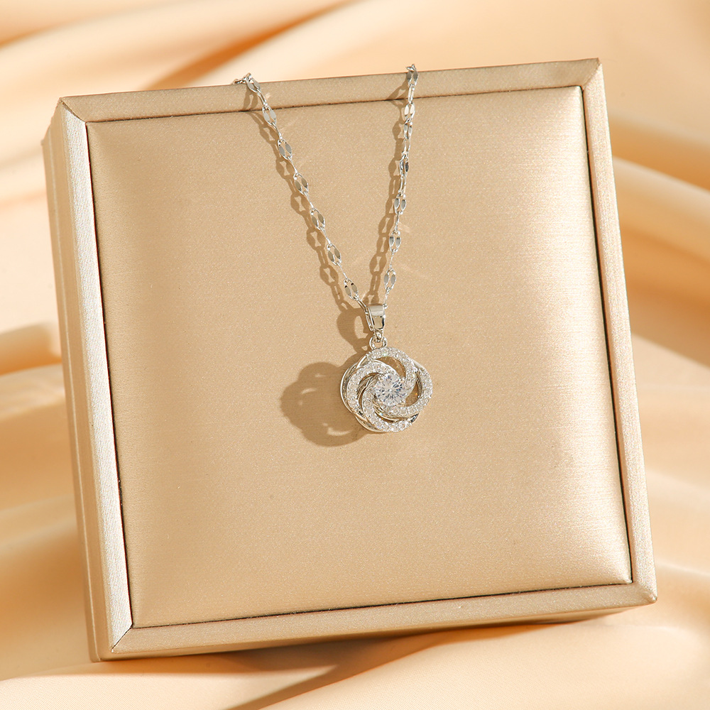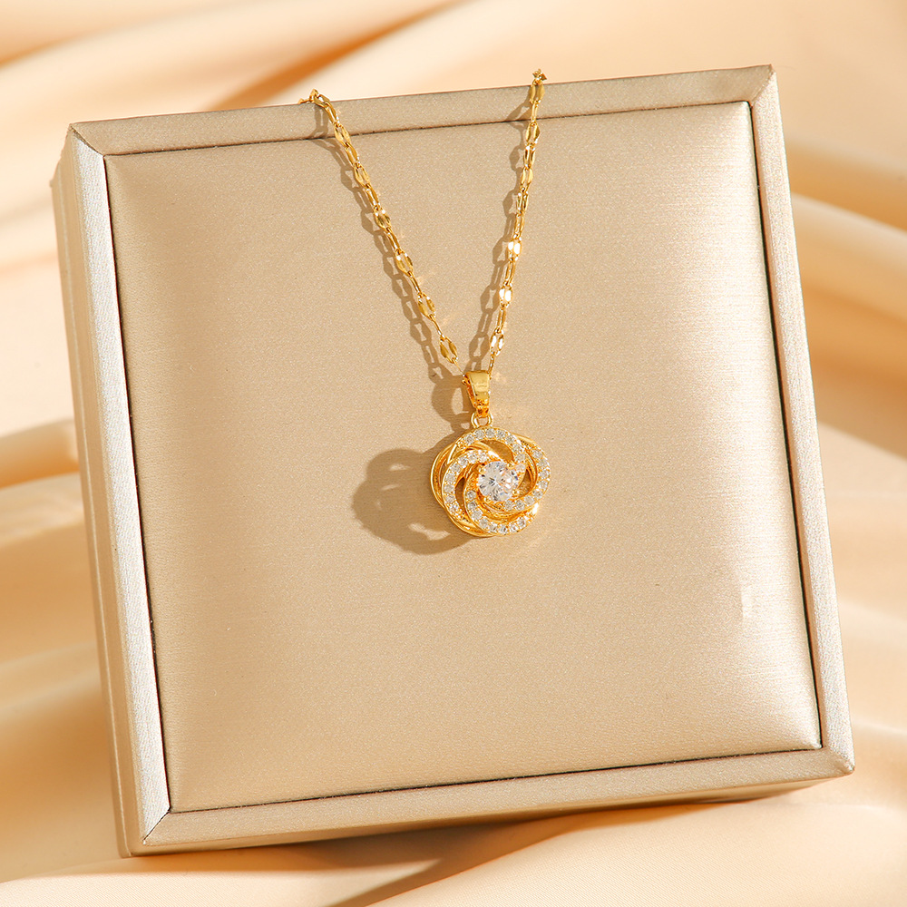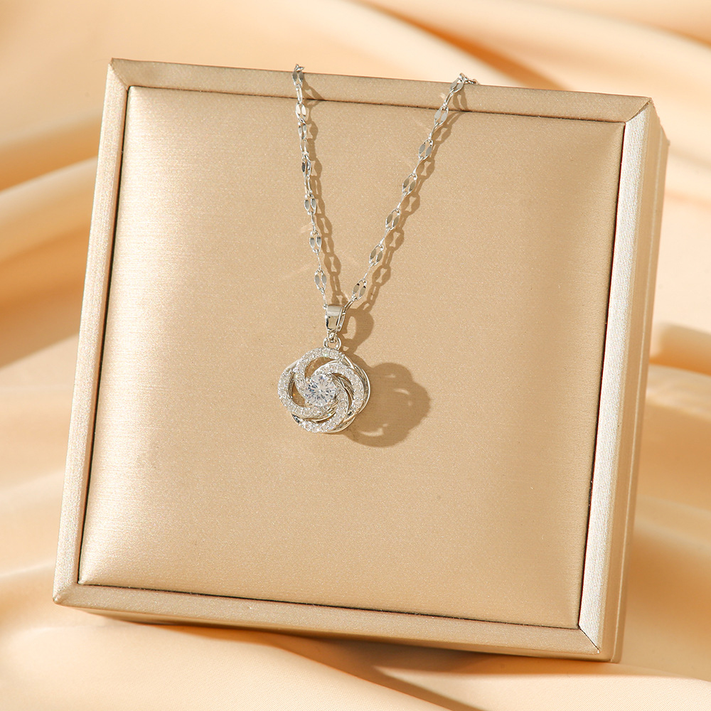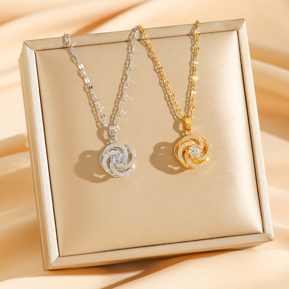 Collier en acier inoxydable Zircon, Acier inoxydable 304, Placage, rotatif & pavé de micro zircon & pour femme & creux, plus de couleurs à choisir, Longueur:Environ 41-50 cm, Vendu par PC