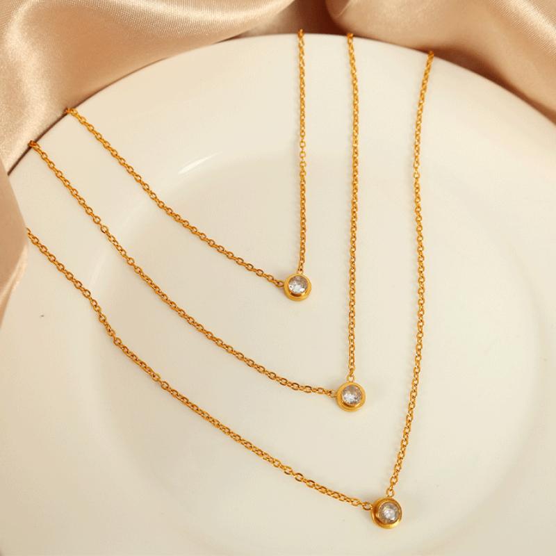 Collier en acier inoxydable Zircon, Acier inoxydable 304, avec zircon cubique, Rond, Placage de couleur d'or, chaîne ovale & creux  Environ 18 pouce, Vendu par brin