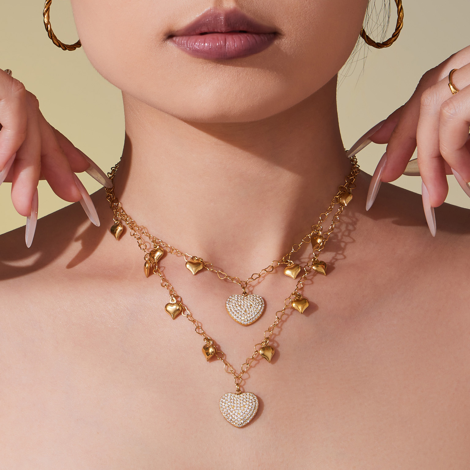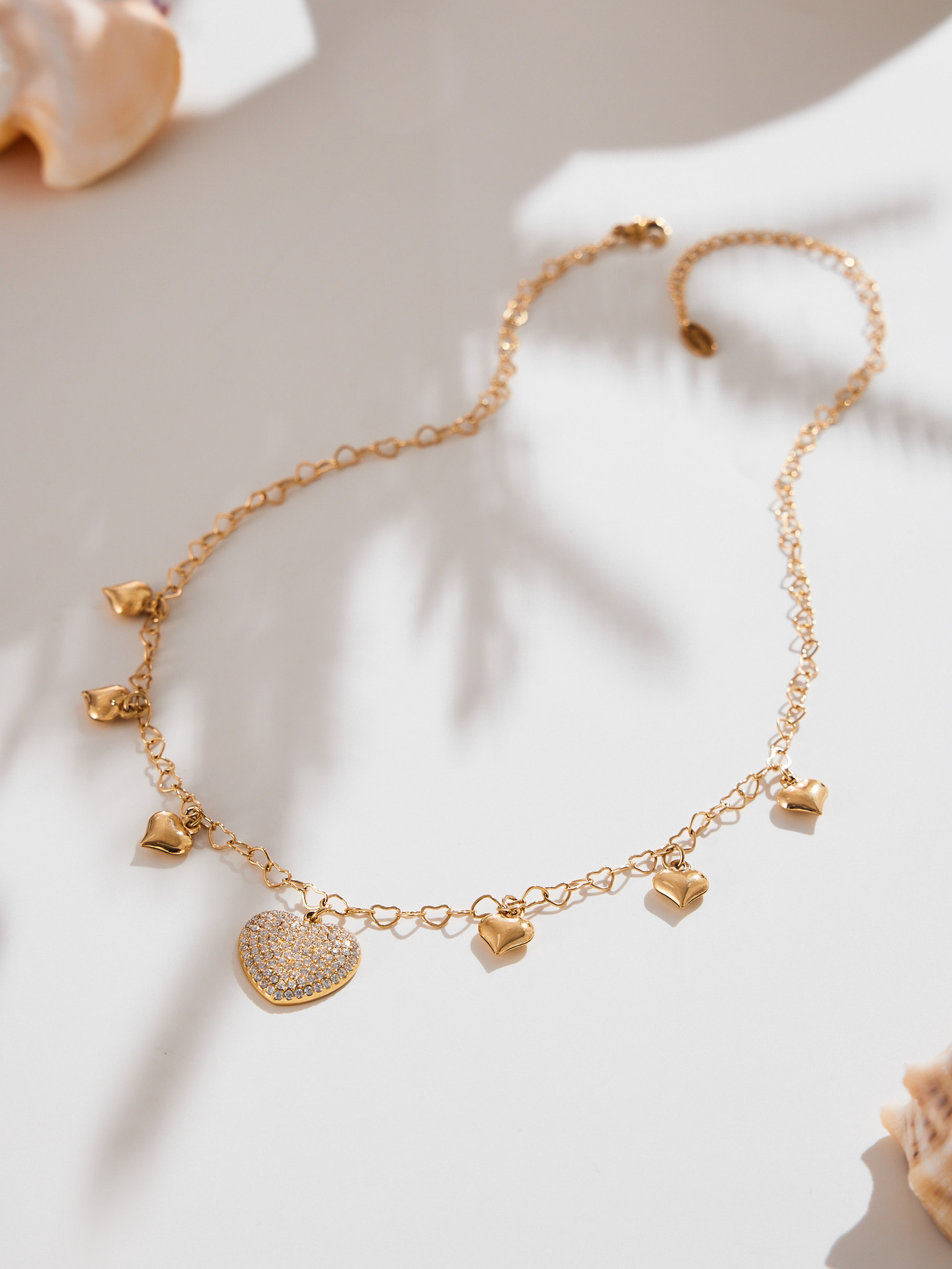 Collier en acier inoxydable Zircon, Acier inoxydable 304, avec zircon cubique, Rond, Placage de couleur d'or, chaîne ovale & creux  Environ 18 pouce, Vendu par brin