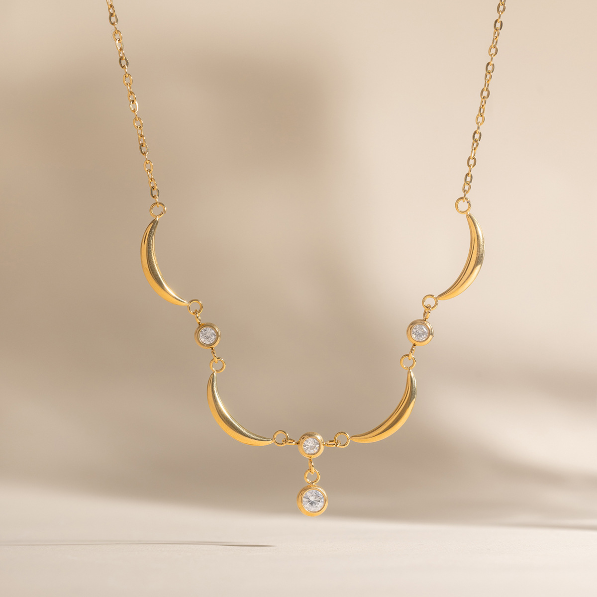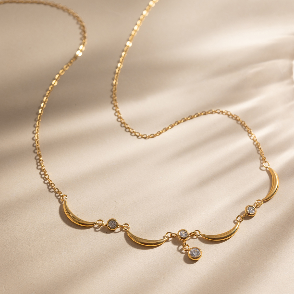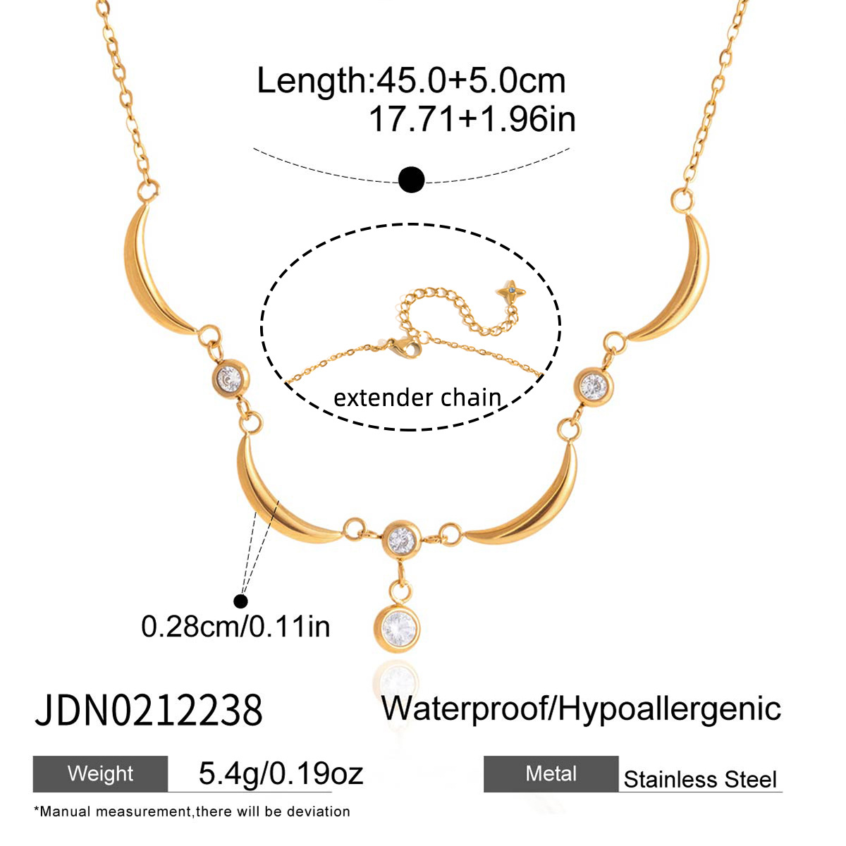 Collier en acier inoxydable Zircon, avec zircon cubique, avec 5cm chaînes de rallonge, Plaqué or 18K, bijoux de mode & pour femme, Longueur:Environ 45 cm, Vendu par brin