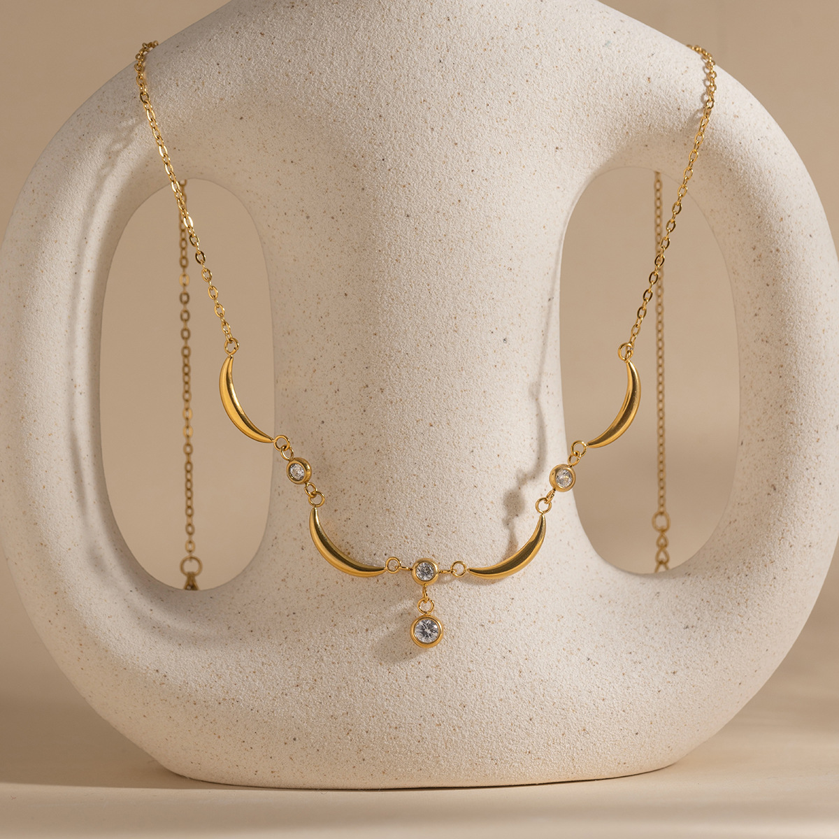 Collier en acier inoxydable Zircon, Acier inoxydable 304, avec zircon cubique, Rond, Placage de couleur d'or, chaîne ovale & creux  Environ 18 pouce, Vendu par brin