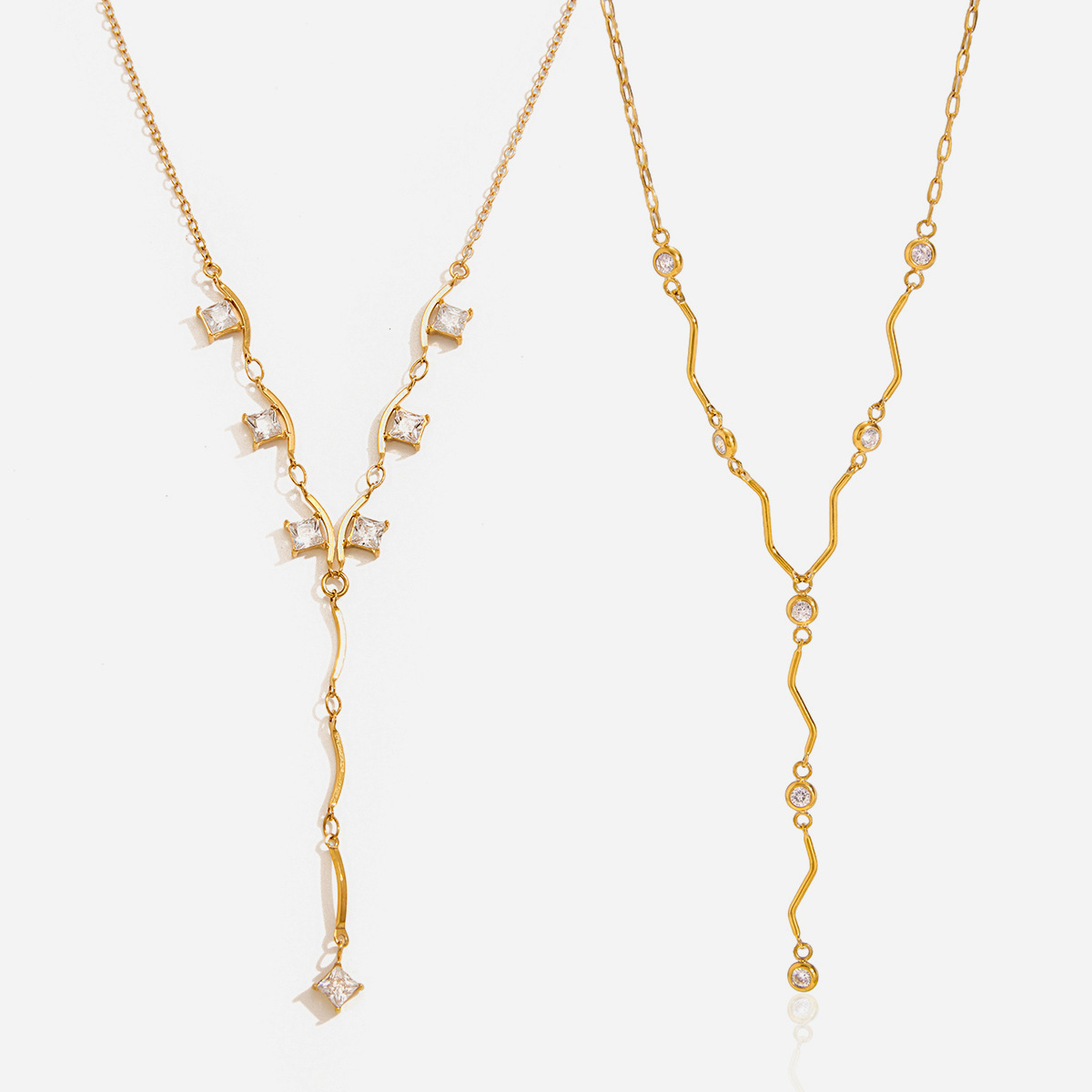 Collier en acier inoxydable Zircon, avec 5cm chaînes de rallonge, Plaqué or 18K, bijoux de mode & styles différents pour le choix & pour femme & avec zircone cubique, plus de couleurs à choisir, Vendu par brin