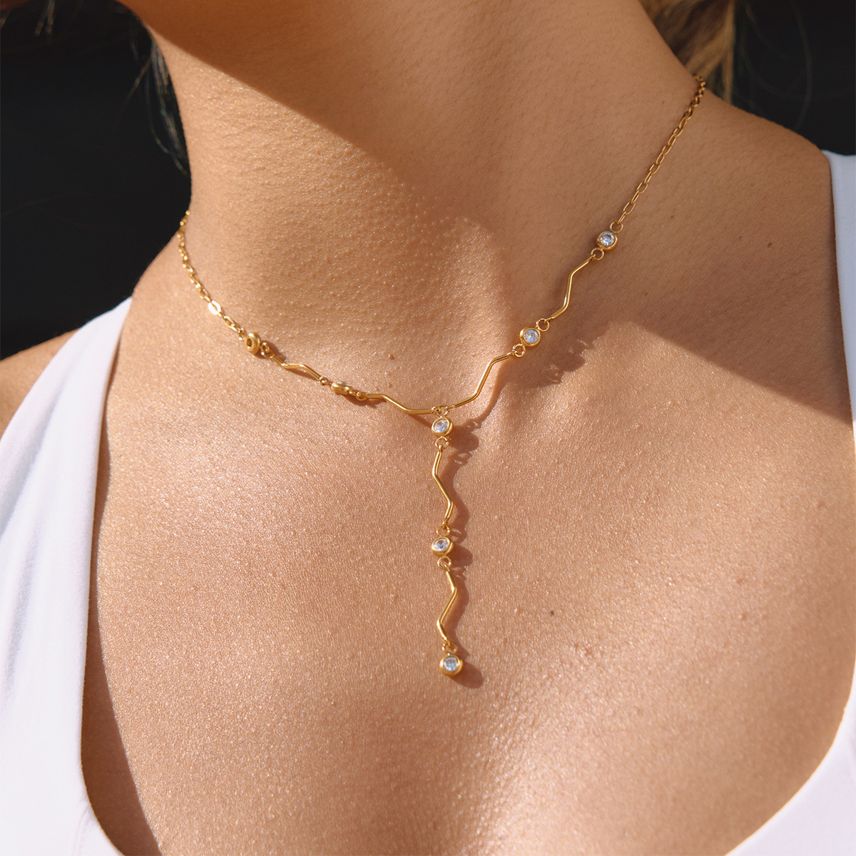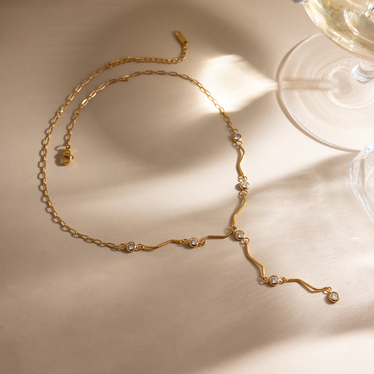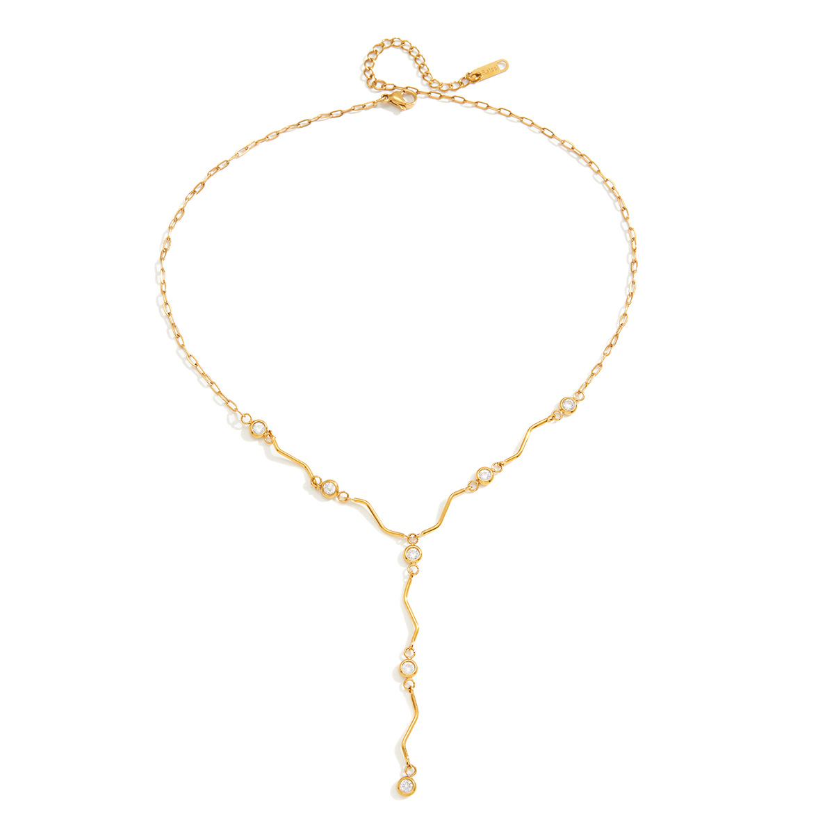 Collier en acier inoxydable Zircon, Acier inoxydable 304, avec zircon cubique, Rond, Placage de couleur d'or, chaîne ovale & creux  Environ 18 pouce, Vendu par brin