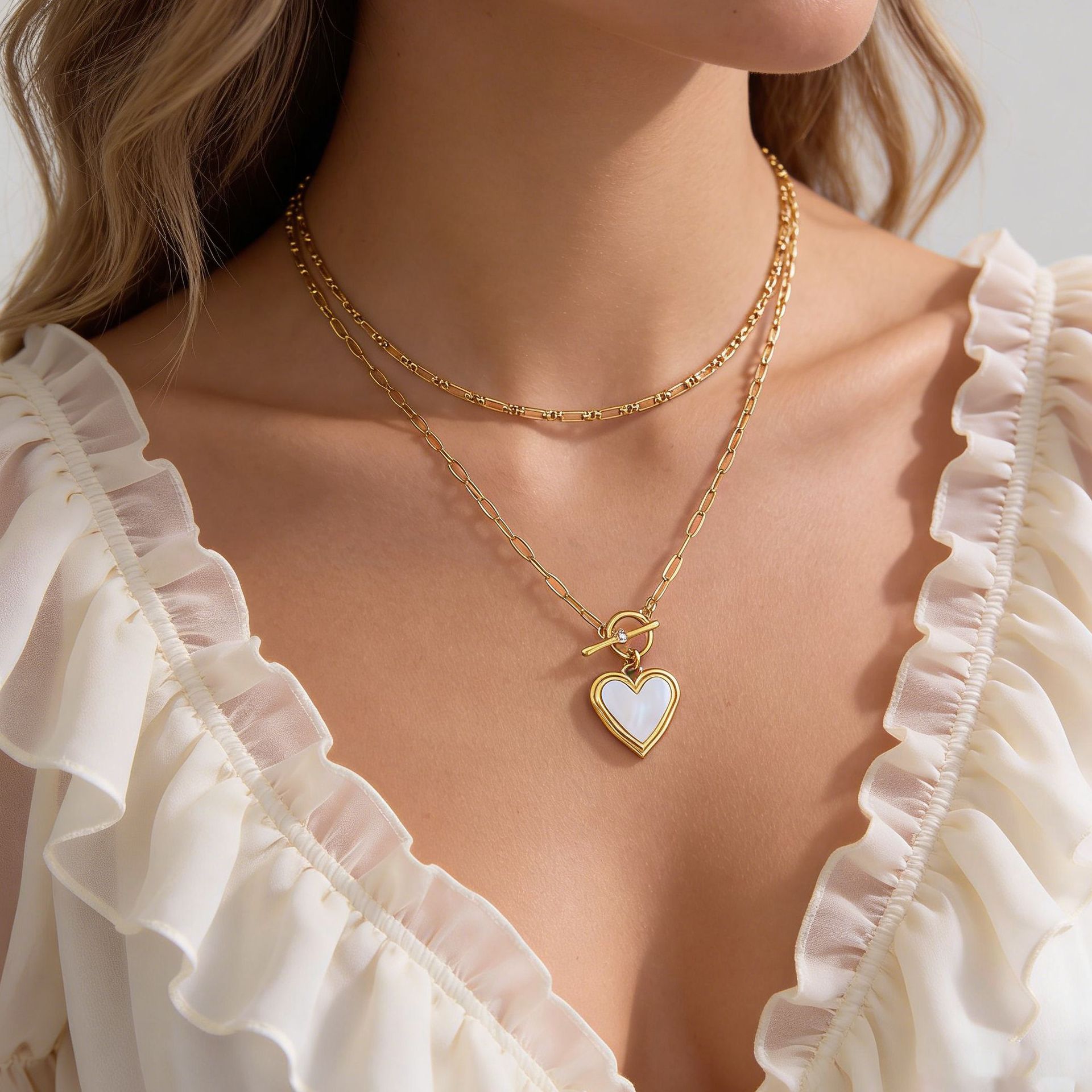 Collier en acier inoxydable Zircon, avec coquille blanche, Plaqué or 18K, bijoux de mode & styles différents pour le choix & pour femme & avec zircone cubique, plus de couleurs à choisir, Vendu par brin