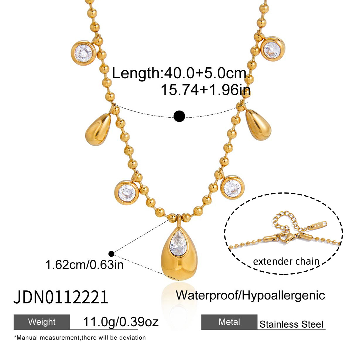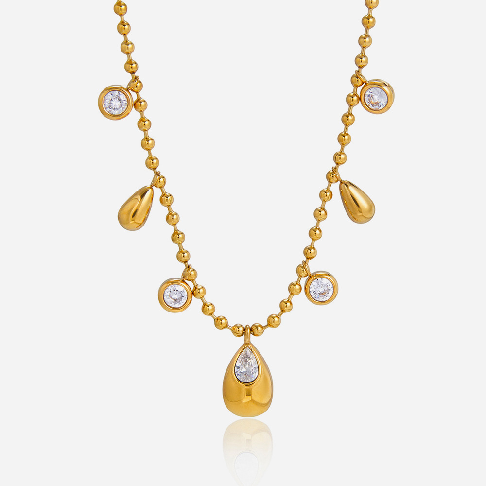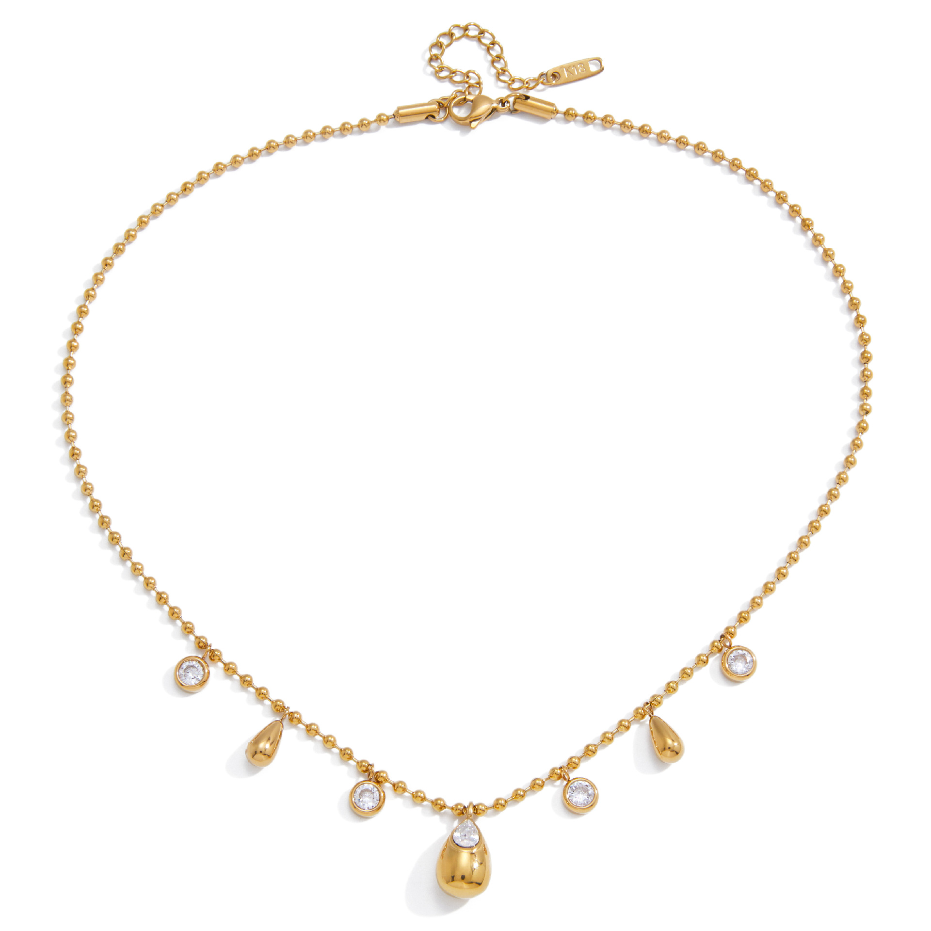 Collier en acier inoxydable Zircon, avec zircon cubique, avec 5cm chaînes de rallonge, Plaqué or 18K, bijoux de mode & chaîne à billes & pour femme, Longueur:Environ 40 cm, Vendu par brin