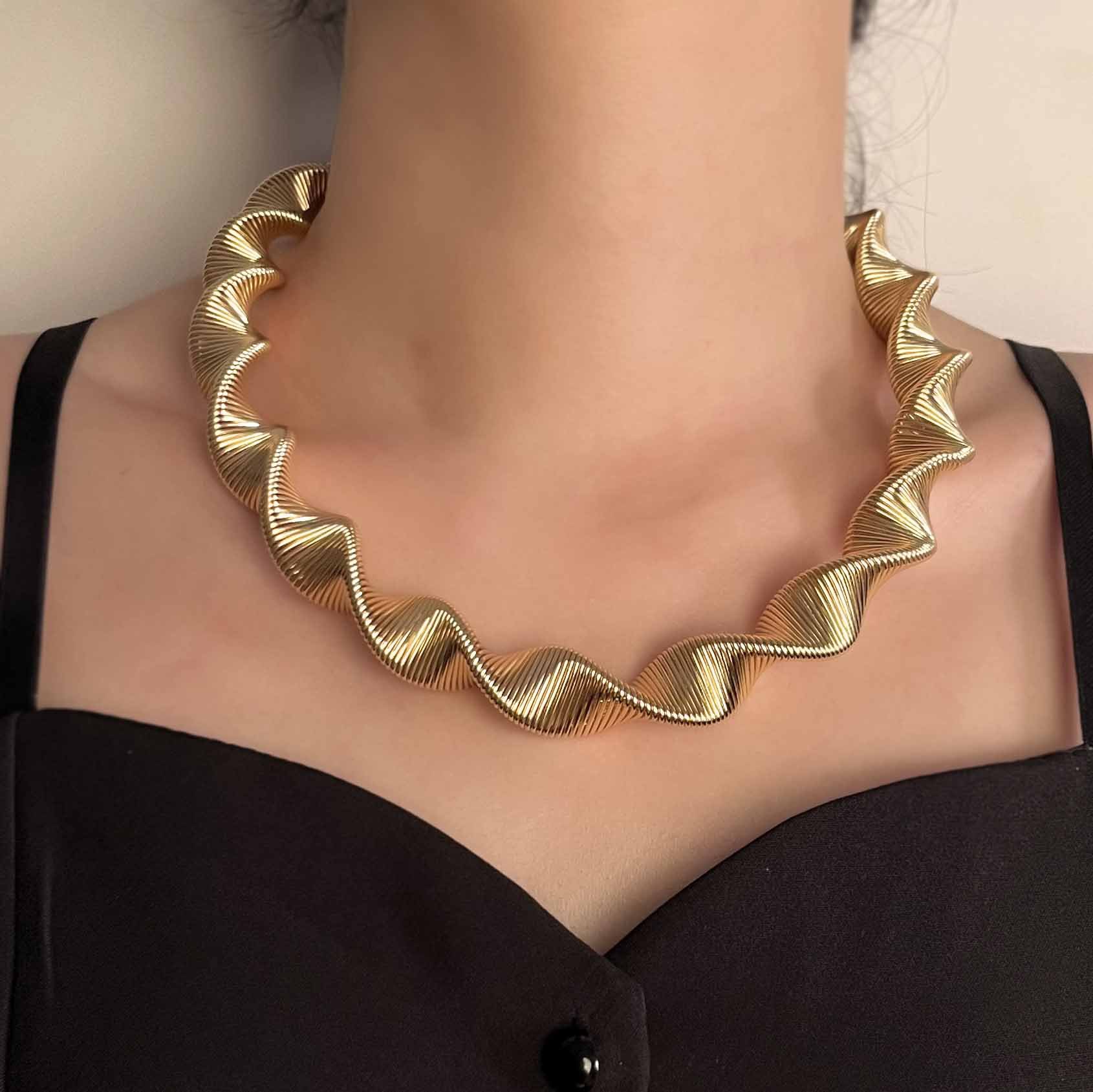 Collier en alliage de zinc, Placage de couleur d'or, bijoux de mode, doré, Vendu par PC