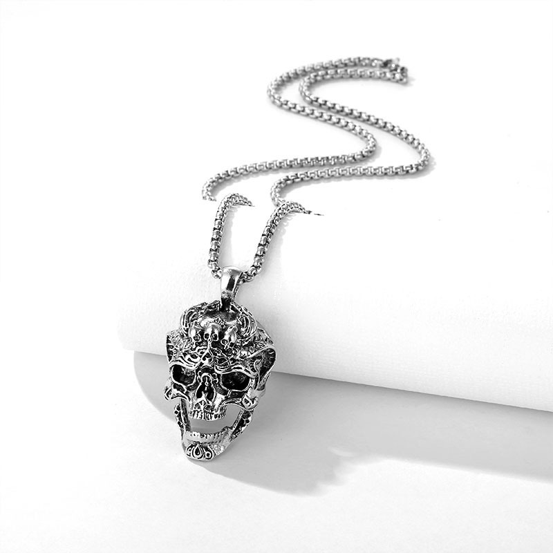 Collier en alliage de zinc, crane, Placage de couleur argentée, bijoux de mode, argent, 4mm, Longueur:60 cm, Vendu par PC