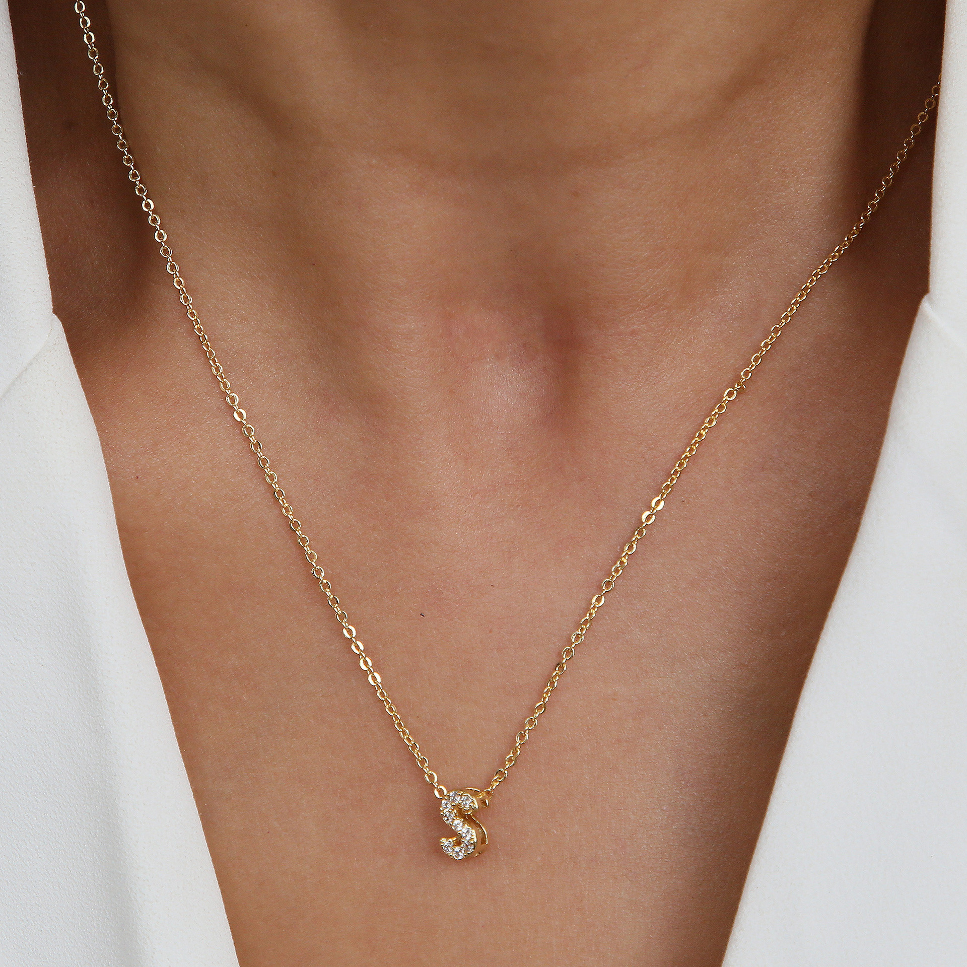 Collier en laiton cubique Zircon Micro Pave, Lettre d’alphabet, Plaqué or 18K, chaîne de boîte & styles différents pour le choix & pavé de micro zircon & pour femme, plus de couleurs à choisir Environ 15.7 pouce, Vendu par brin