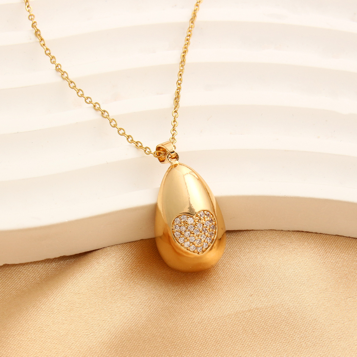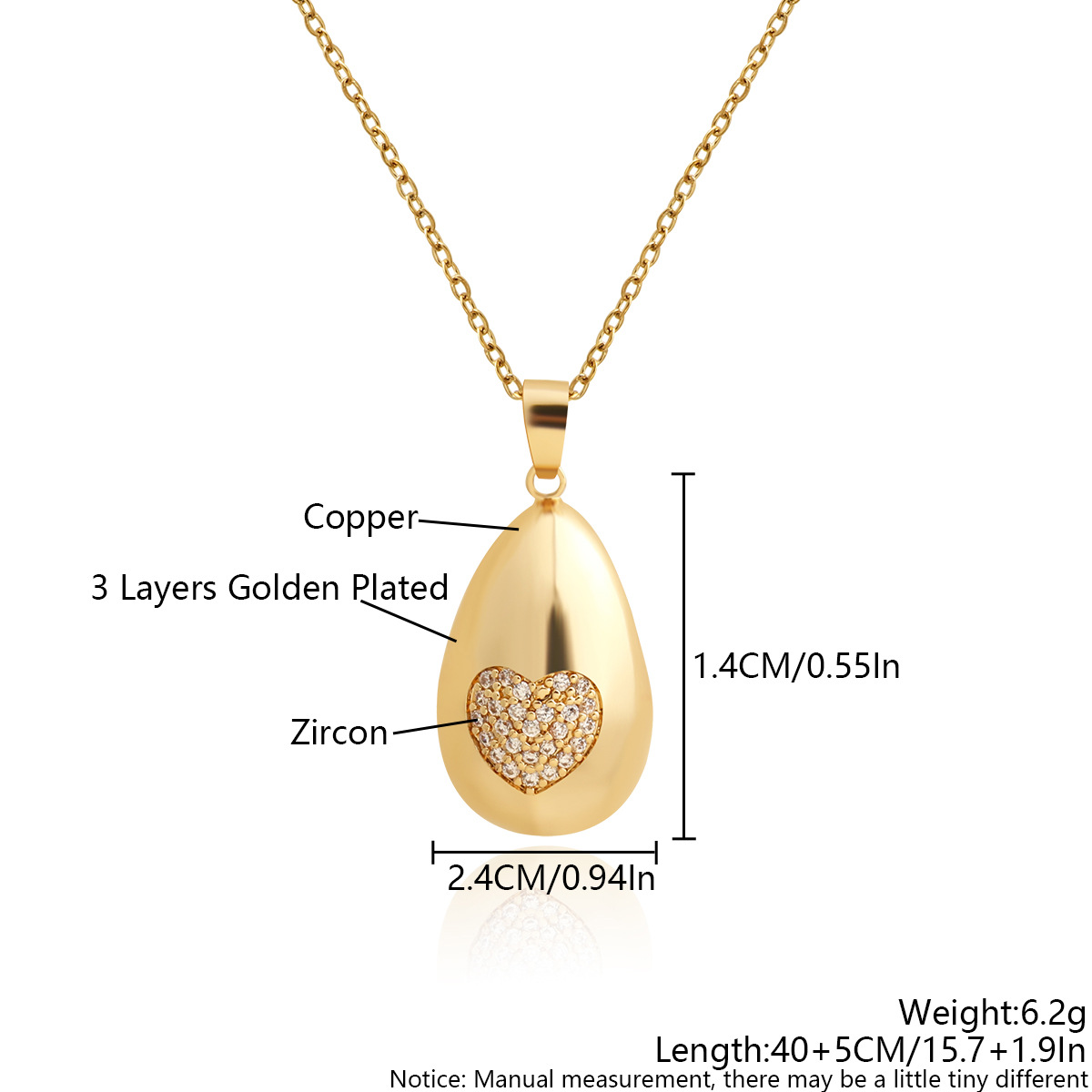 Collier en laiton cubique Zircon Micro Pave, coeur, Plaqué d'or, chaîne ovale & pavé de micro zircon & pour femme, sans plomb et cadmium, 40cm Environ 15.5 pouce, Vendu par brin