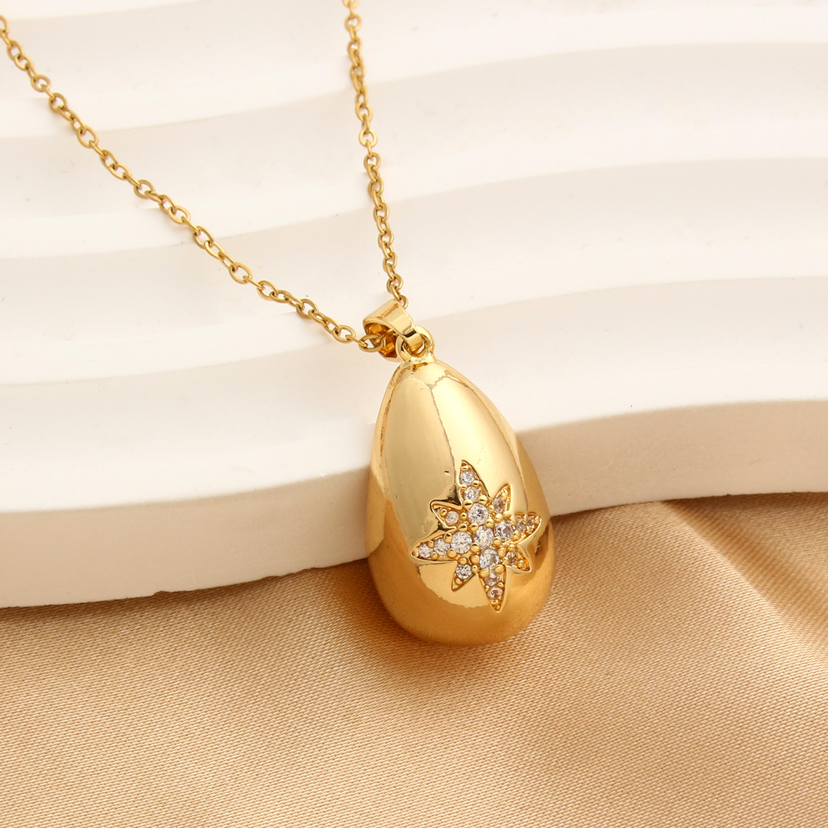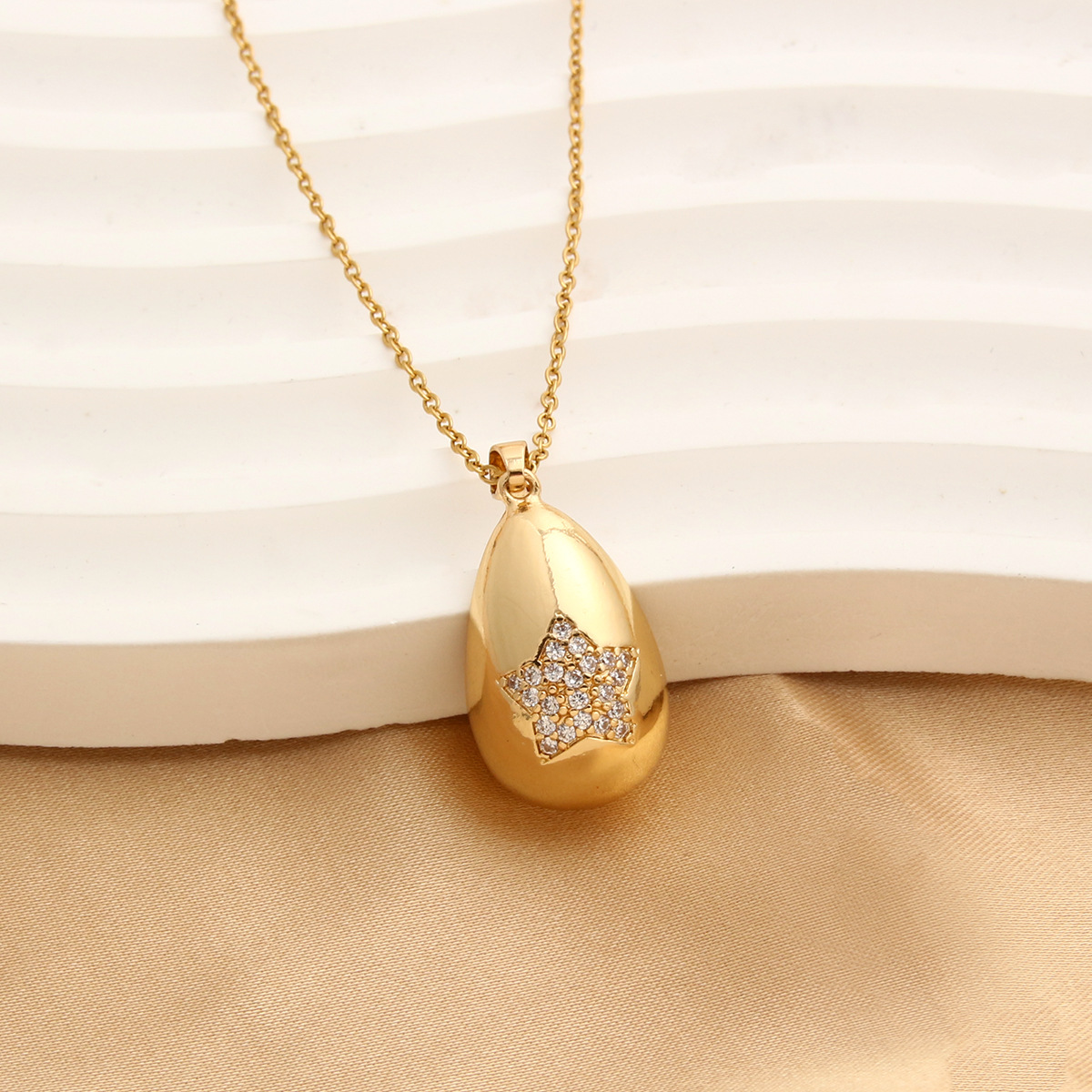 Collier en laiton cubique Zircon Micro Pave, étoile, Placage de couleur d'or, pavé de micro zircon & pour femme, protéger l'environnement, sans nickel, plomb et cadmium, 15mm,11mm pouce, Vendu par PC