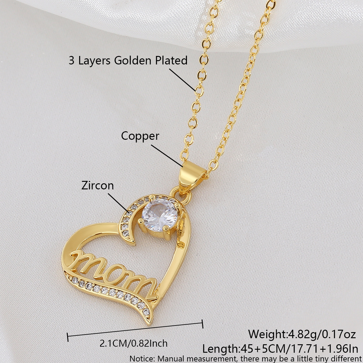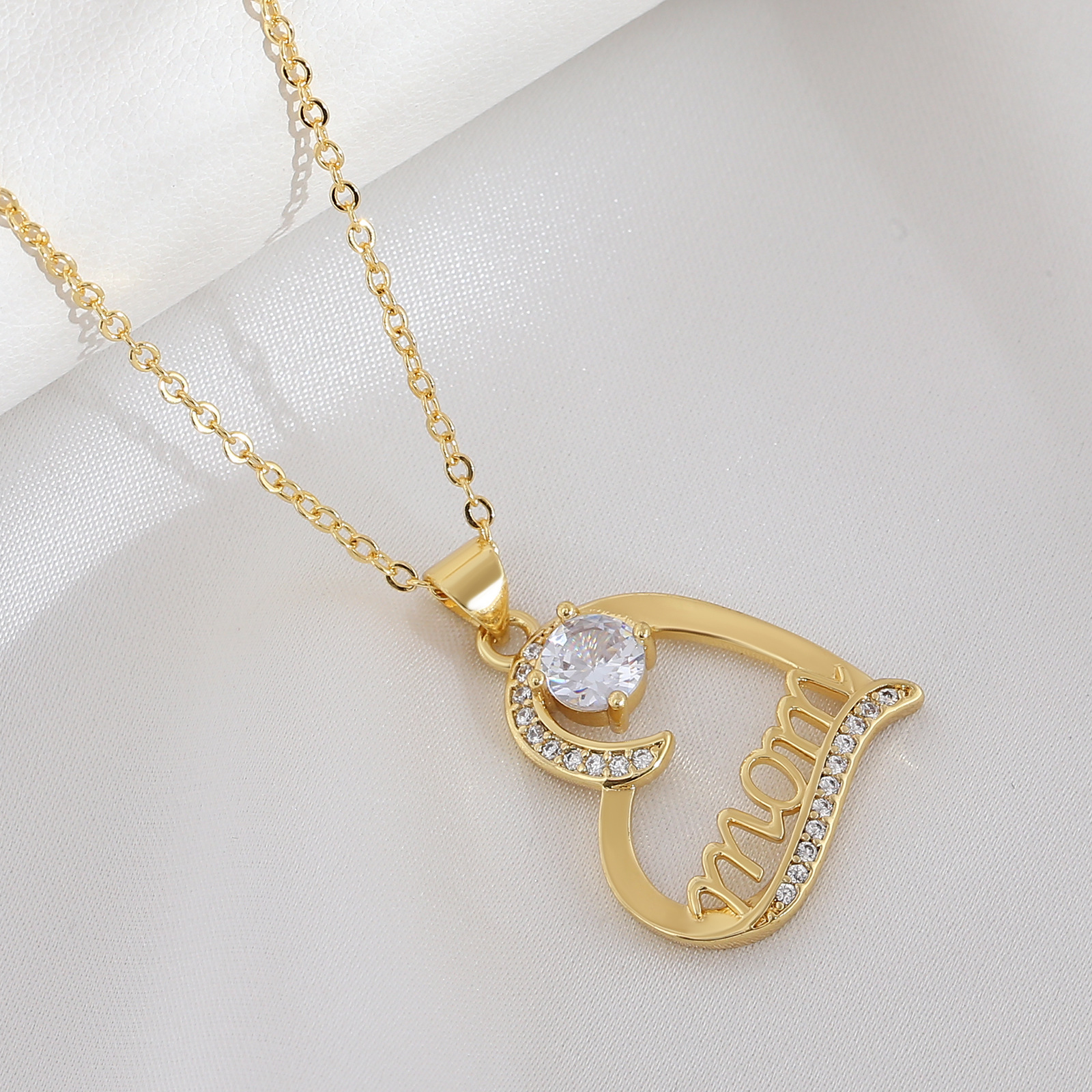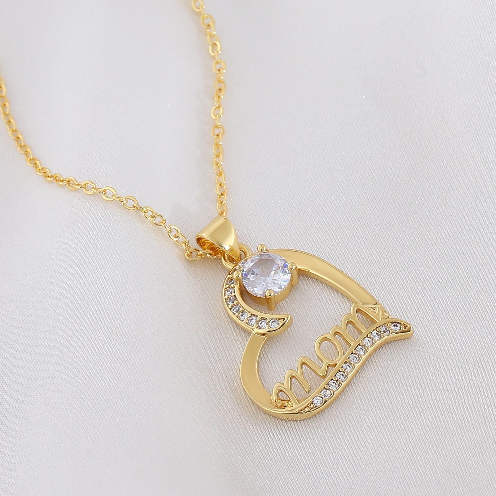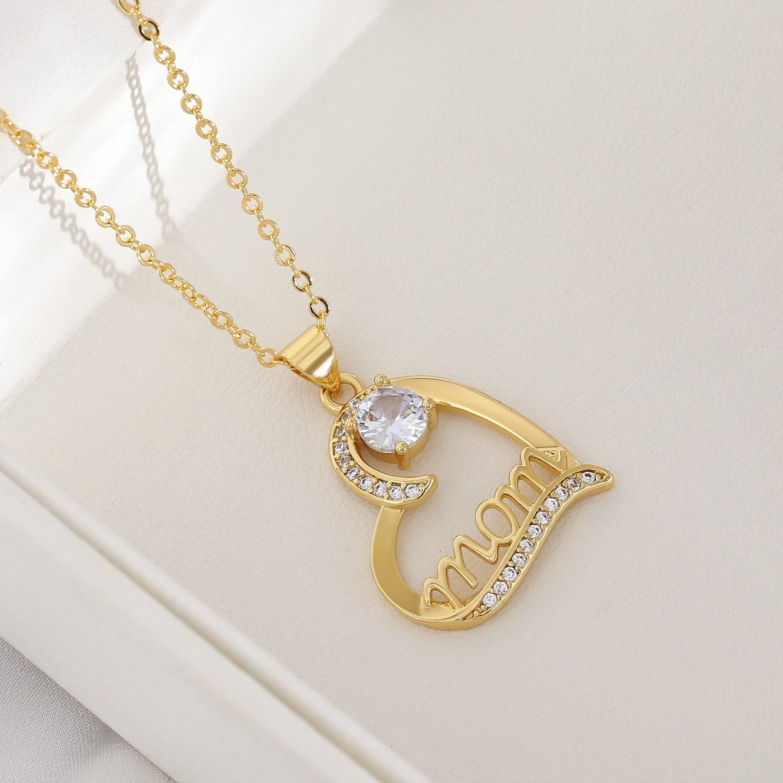 Collier en laiton cubique Zircon Micro Pave, coeur, Plaqué d'or, chaîne ovale & pavé de micro zircon & pour femme, sans plomb et cadmium, 40cm Environ 15.5 pouce, Vendu par brin